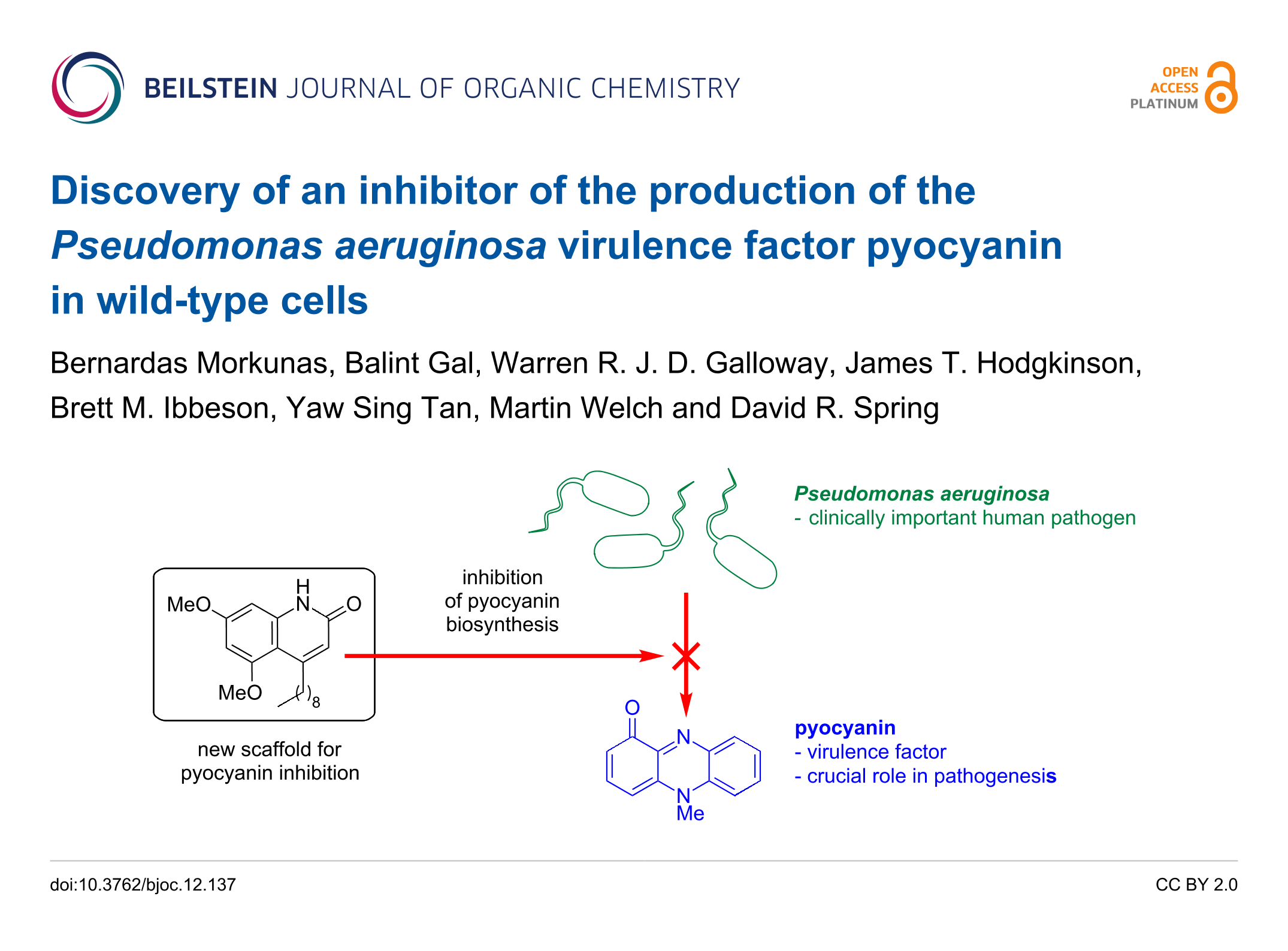 Morkunas, B.; Gal, B.; Galloway, W. R. J. D.; Hodgkinson, J. T.; Ibbeson, B. M.; Sing Tan, Y.; Welch, M.; Spring, D. R. Beilstein J. Org. Chem. 2016, 12, 1428–1433. doi:10.3762/bjoc.12.137