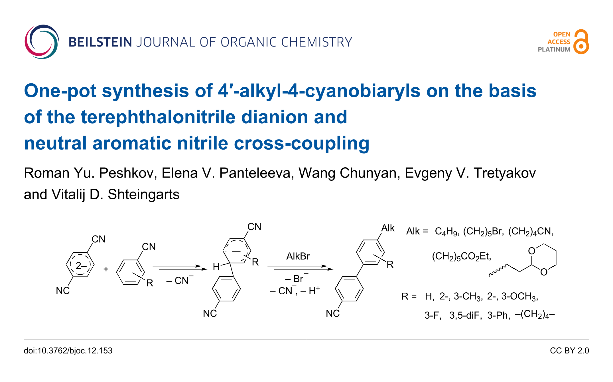 - Peshkov, R. Y.; Wang, C.; Panteleeva, E. V.; Rybalova, T. V.; Tretyakov, E. V. Radical Anions of Aromatic Carbonitriles as Reagents for Arylation of Fluorinated Benzonitriles. The Journal of organic chemistry 2019, 84, 963–972. doi:10.1021/acs.joc.8b02904