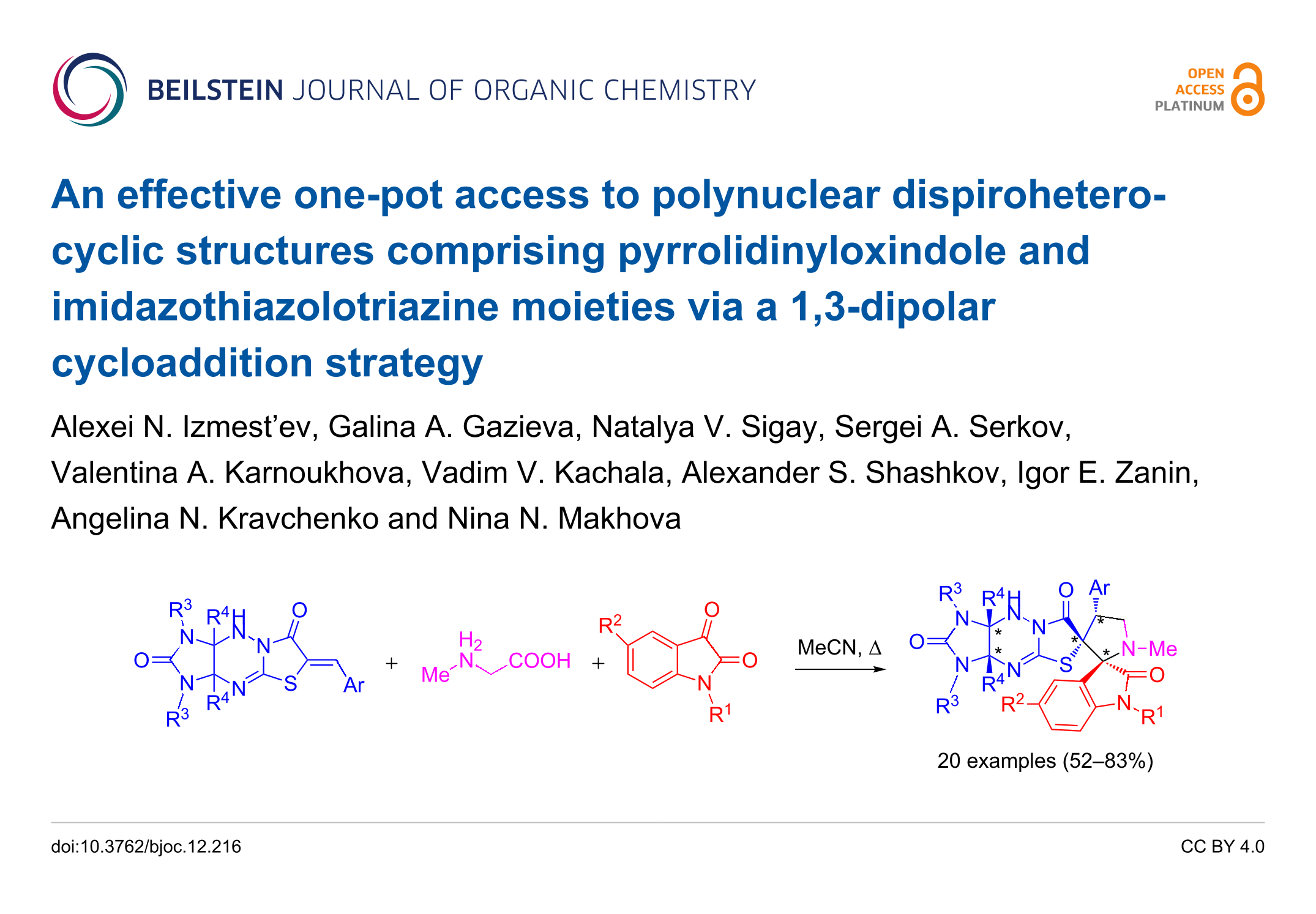Izmest’ev, A. N.; Gazieva, G. A.; Sigay, N. V.; Serkov, S. A.; Karnoukhova, V. A.; Kachala, V. V.; Shashkov, A. S.; Zanin, I. E.; Kravchenko, A. N.; Makhova, N. N. Beilstein J. Org. Chem. 2016, 12, 2240–2249. doi:10.3762/bjoc.12.216