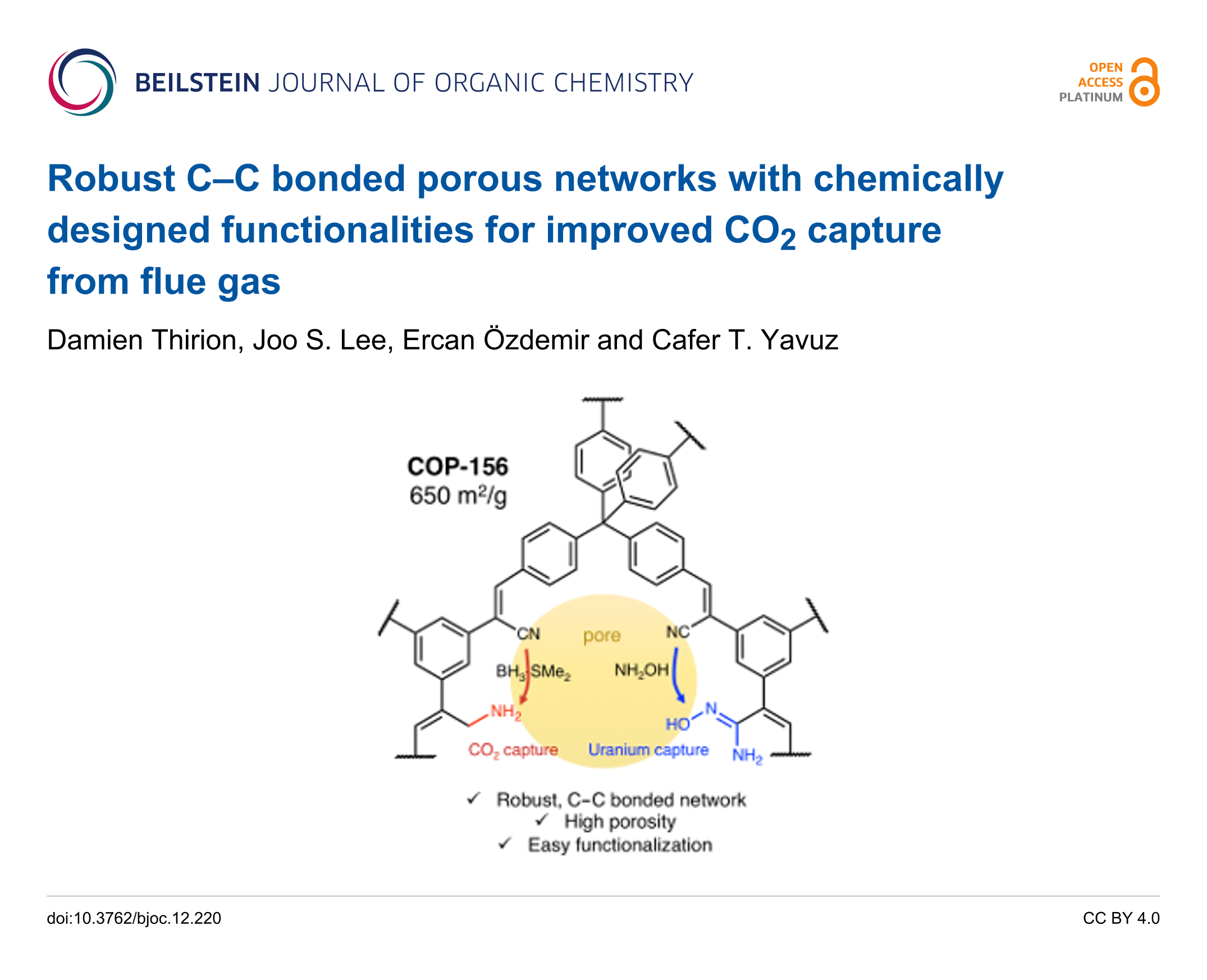 Thirion, D.; Lee, J. S.; Özdemir, E.; Yavuz, C. T. Beilstein J. Org. Chem. 2016, 12, 2274–2279. doi:10.3762/bjoc.12.220