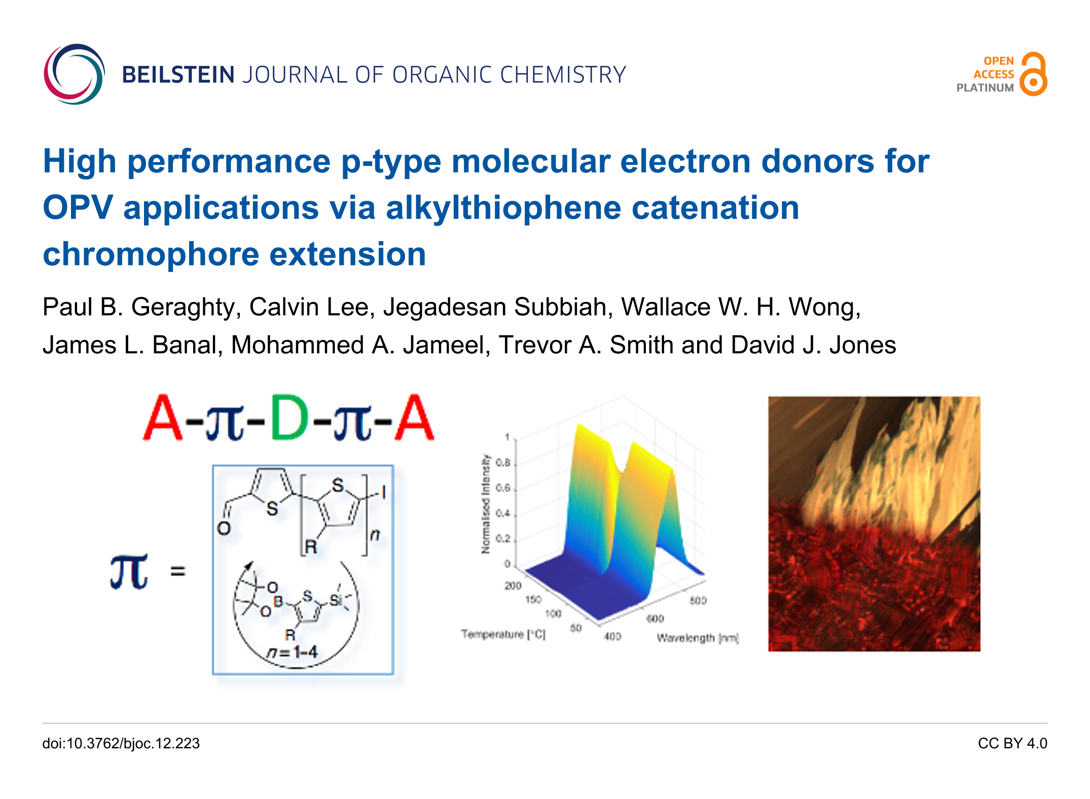 Geraghty, P. B.; Lee, C.; Subbiah, J.; Wong, W. W. H.; Banal, J. L.; Jameel, M. A.; Smith, T. A.; Jones, D. J. Beilstein J. Org. Chem. 2016, 12, 2298–2314. doi:10.3762/bjoc.12.223