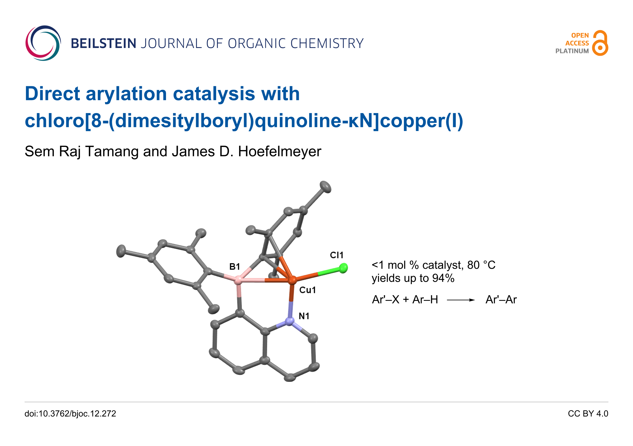Direct arylation catalysis with chloro[8-(dimesitylboryl)quinoline-κN]copper(I)