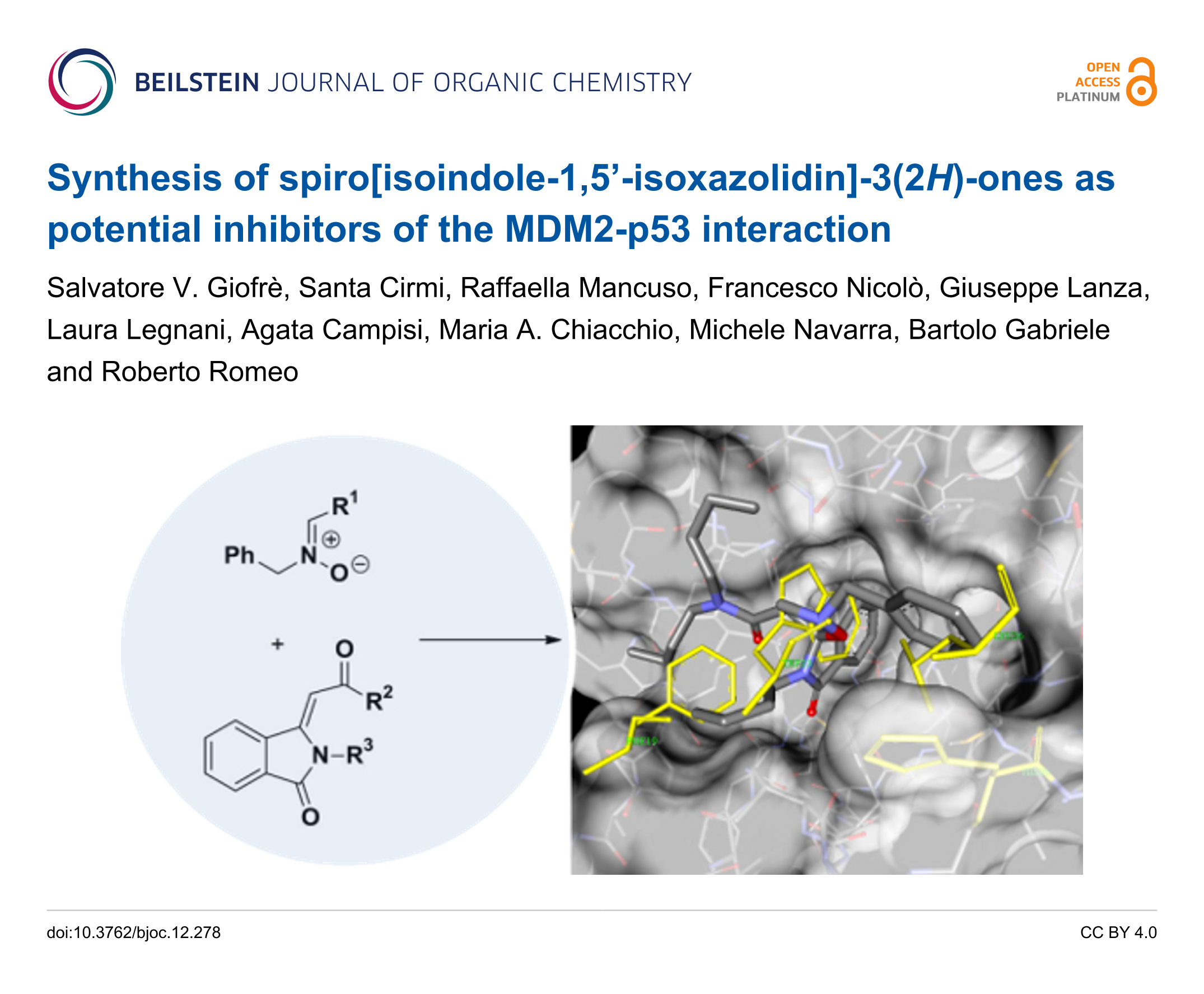 Giofrè, S. V.; Cirmi, S.; Mancuso, R.; Nicolò, F.; Lanza, G.; Legnani, L.; Campisi, A.; Chiacchio, M. A.; Navarra, M.; Gabriele, B.; Romeo, R. Beilstein J. Org. Chem. 2016, 12, 2793–2807. doi:10.3762/bjoc.12.278