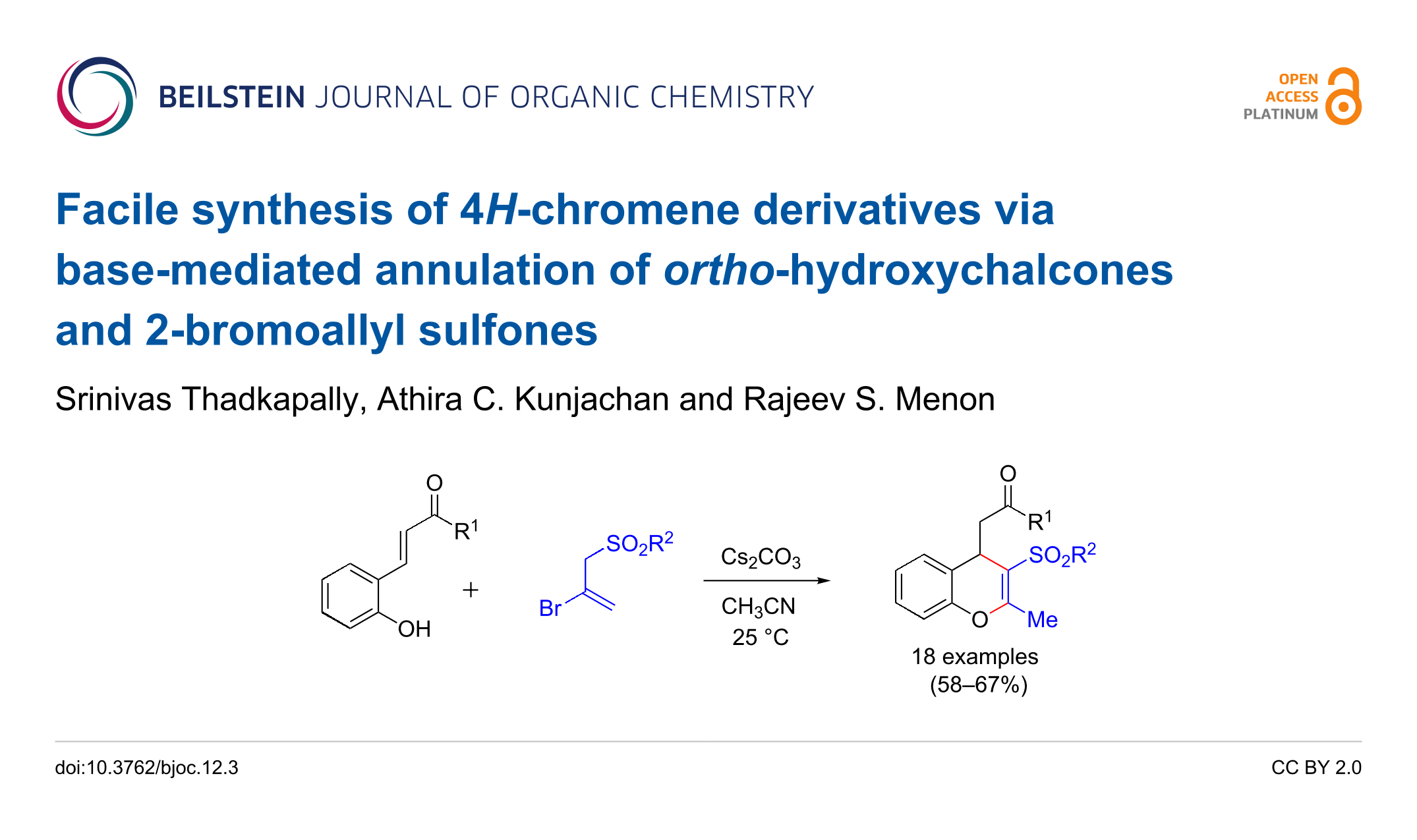 Thadkapally, S.; Kunjachan, A. C.; Menon, R. S. Beilstein J. Org. Chem. 2016, 12, 16–21. doi:10.3762/bjoc.12.3
