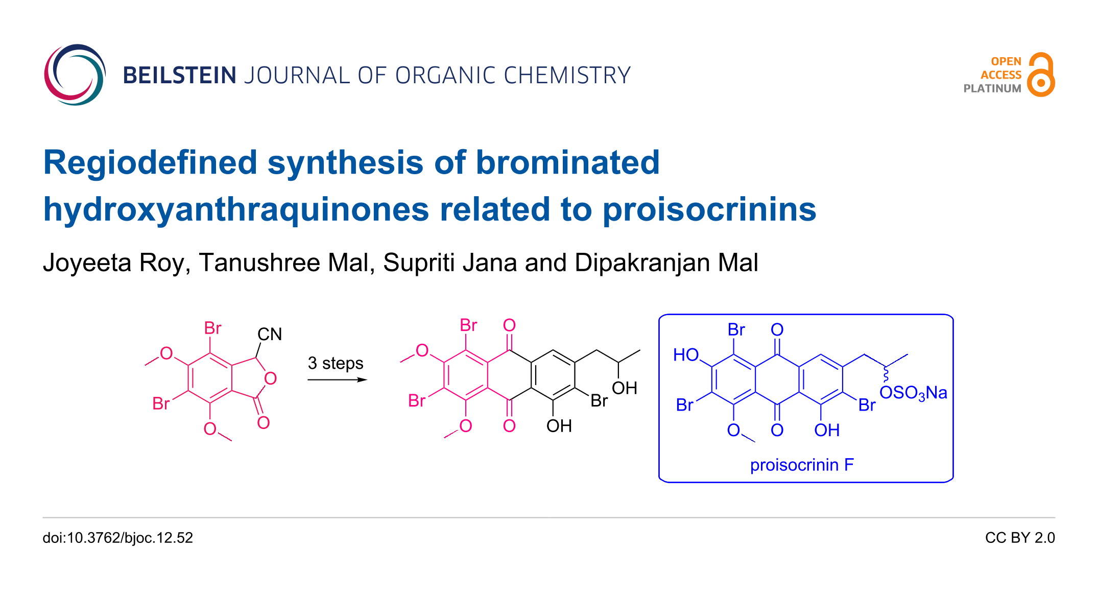 - Roy, J.; Mal, T.; Jana, S.; Mal, D. Regiodefined Synthesis of Brominated Hydroxyanthraquinones Related to Proisocrinins. ChemInform 2016, 47. doi:10.1002/chin.201624096