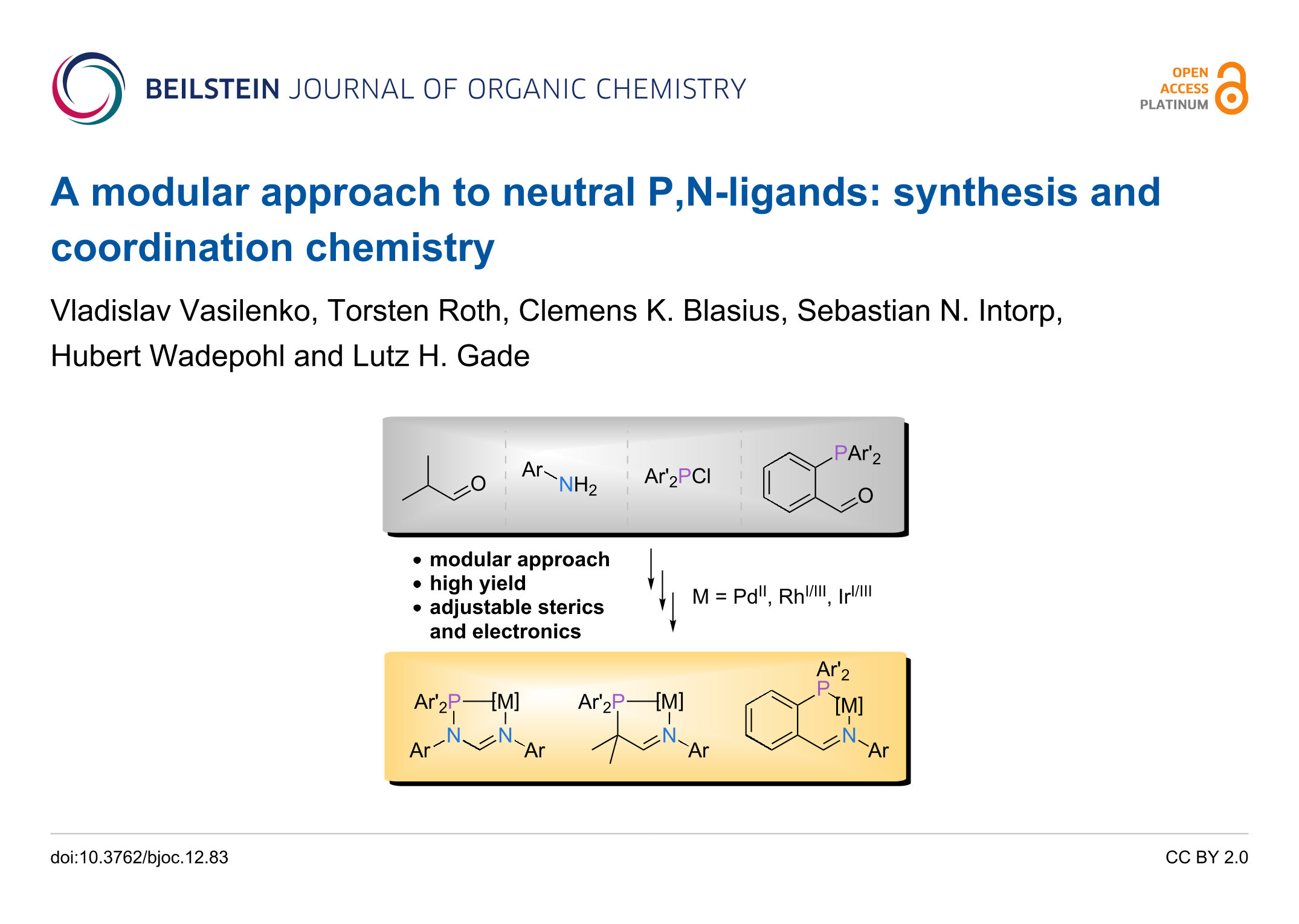 Vasilenko, V.; Roth, T.; Blasius, C. K.; Intorp, S. N.; Wadepohl, H.; Gade, L. H. Beilstein J. Org. Chem. 2016, 12, 846–853. doi:10.3762/bjoc.12.83