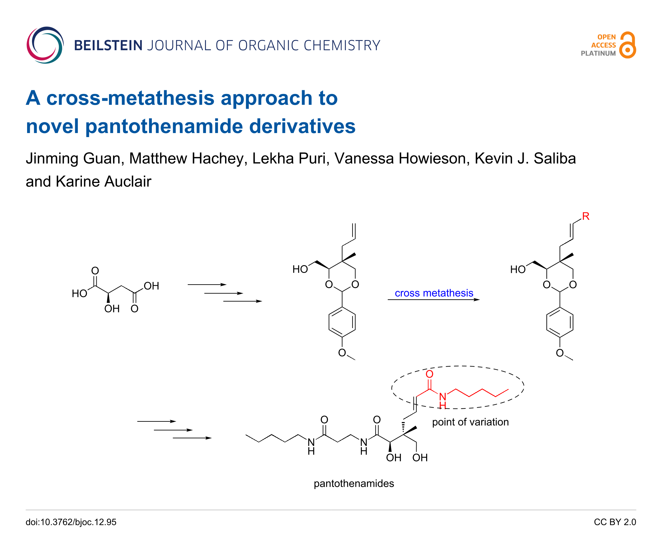 • Guan, J.; Spry, C.; Tjhin, E. T.; Yang, P.; Kittikool, T.; Howieson, V. M.; Ling, H.; Starrs, L.; Burgio, G.; Saliba, K. J.; Auclair, K. Exploring heteroaromatic rings as a replacement for the labile amide of antiplasmodial pantothenamides. Cold Spring Harbor Laboratory 2020. doi:10.1101/2020.10.02.324079