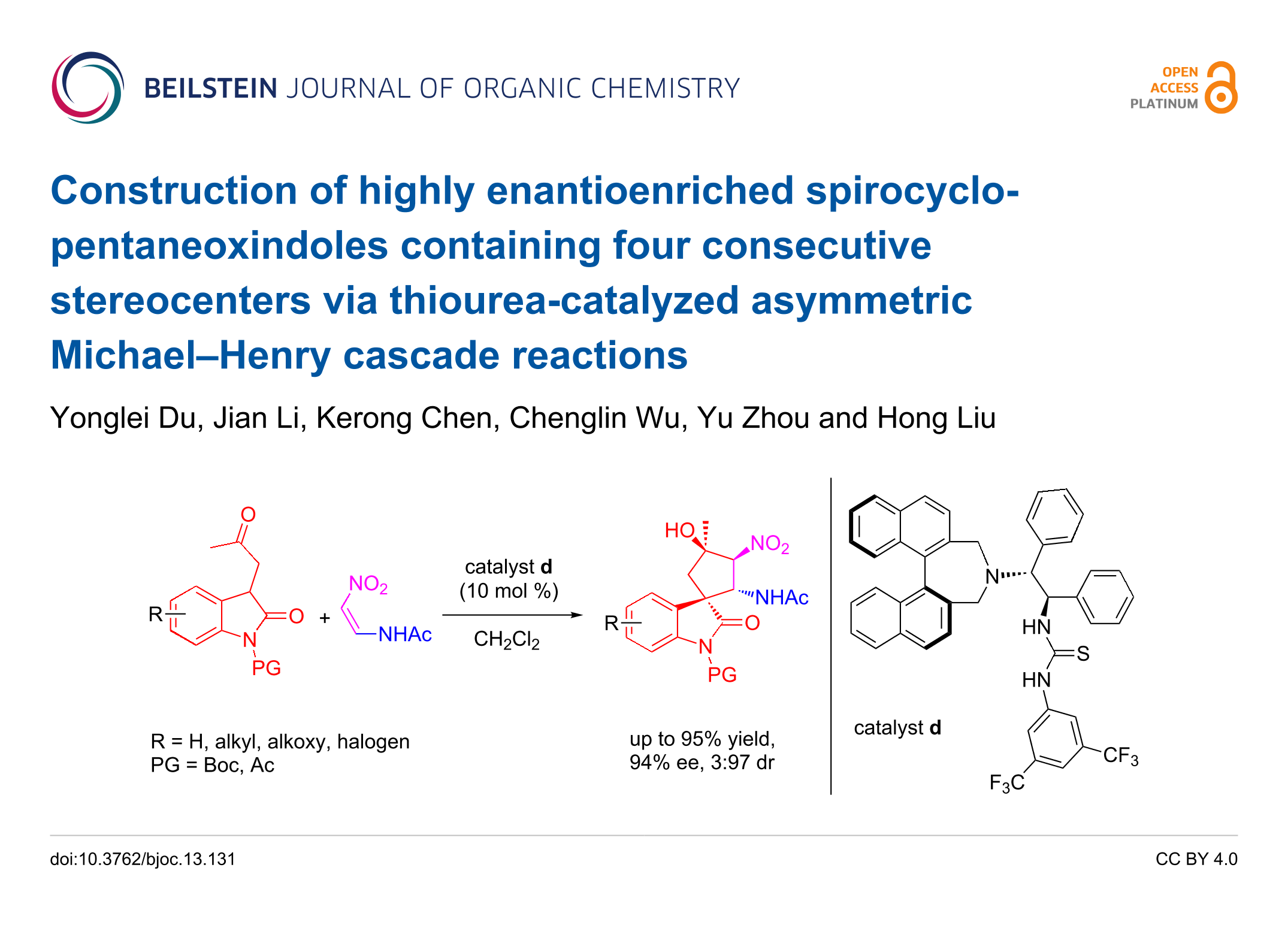 Du, Y.; Li, J.; Chen, K.; Wu, C.; Zhou, Y.; Liu, H. Beilstein J. Org. Chem. 2017, 13, 1342–1349. doi:10.3762/bjoc.13.131