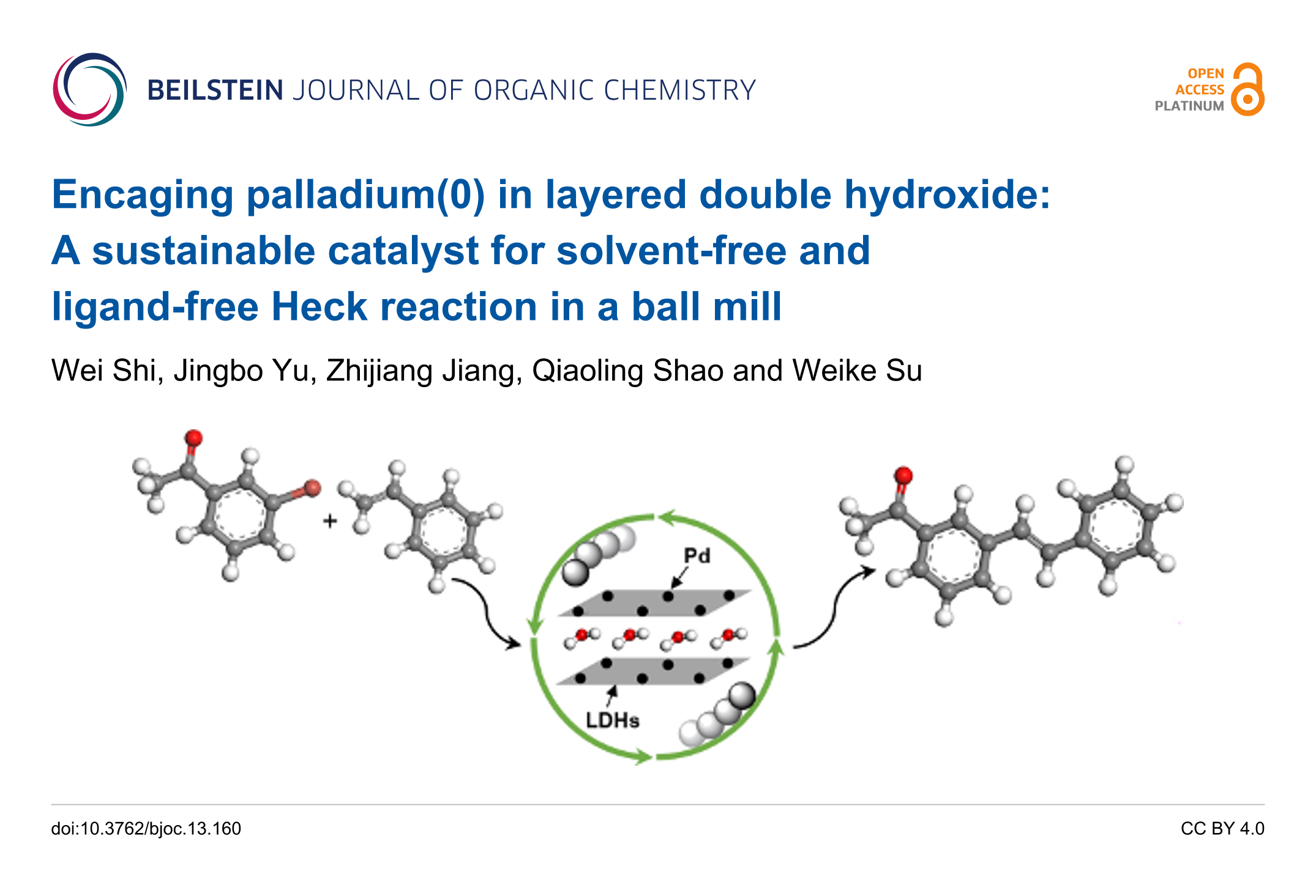 Encaging palladium(0) in layered double hydroxide: A sustainable catalyst for solvent-free and ligand-free Heck reaction in a ball mill