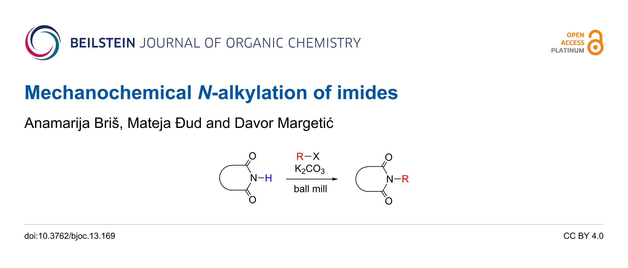 - Štrbac, P.; Margetić, D. Complementarity of solution and solid state mechanochemical reaction conditions demonstrated by 1,2-debromination of tricyclic imides. Beilstein journal of organic chemistry 2022, 18, 746–753. doi:10.3762/bjoc.18.75