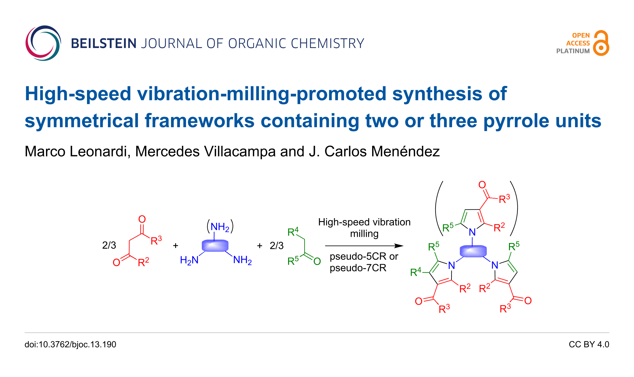 High-speed vibration-milling-promoted synthesis of symmetrical frameworks containing two or three pyrrole units