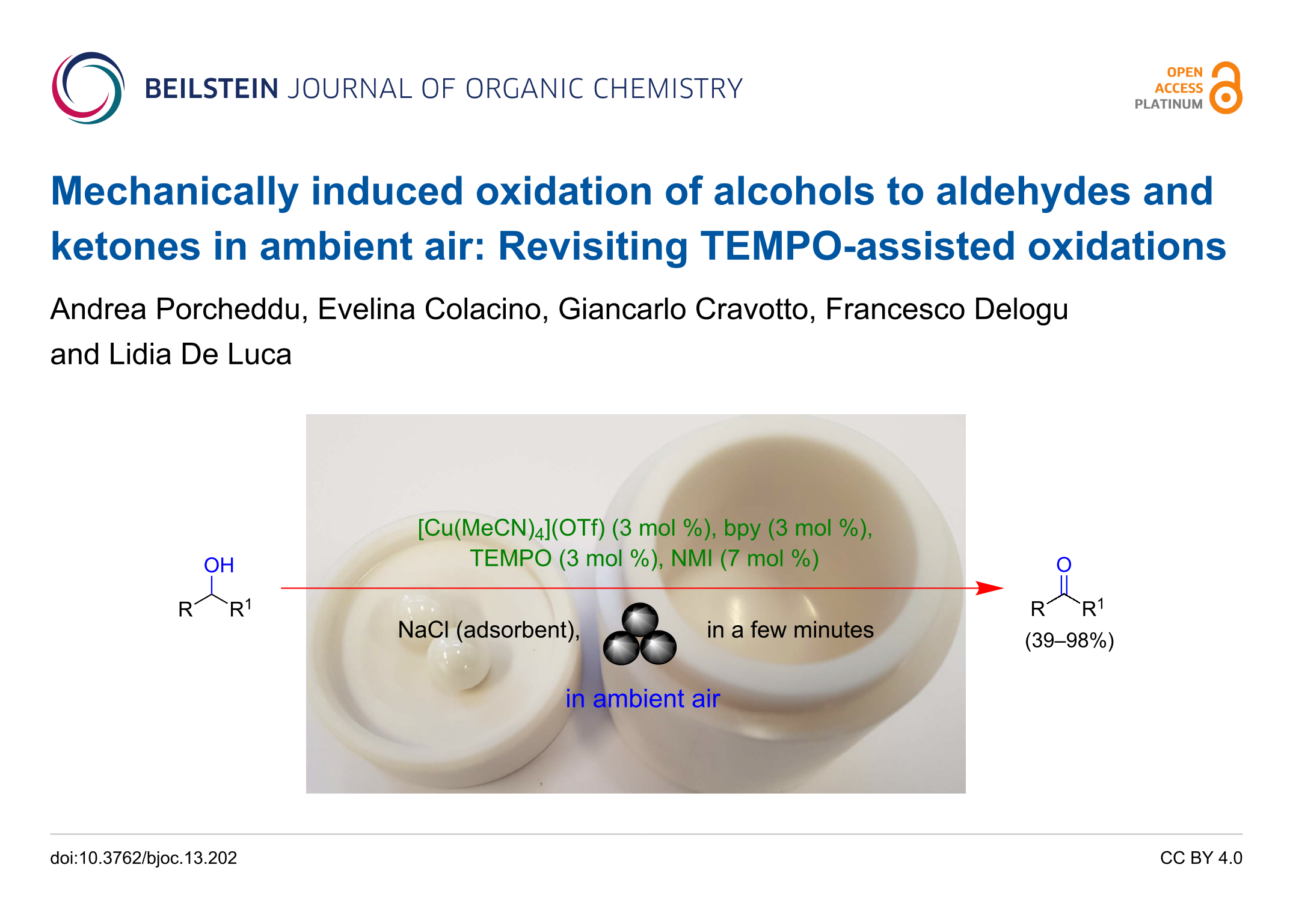 Porcheddu, A.; Colacino, E.; Cravotto, G.; Delogu, F.; De Luca, L. Beilstein J. Org. Chem. 2017, 13, 2049–2055. doi:10.3762/bjoc.13.202