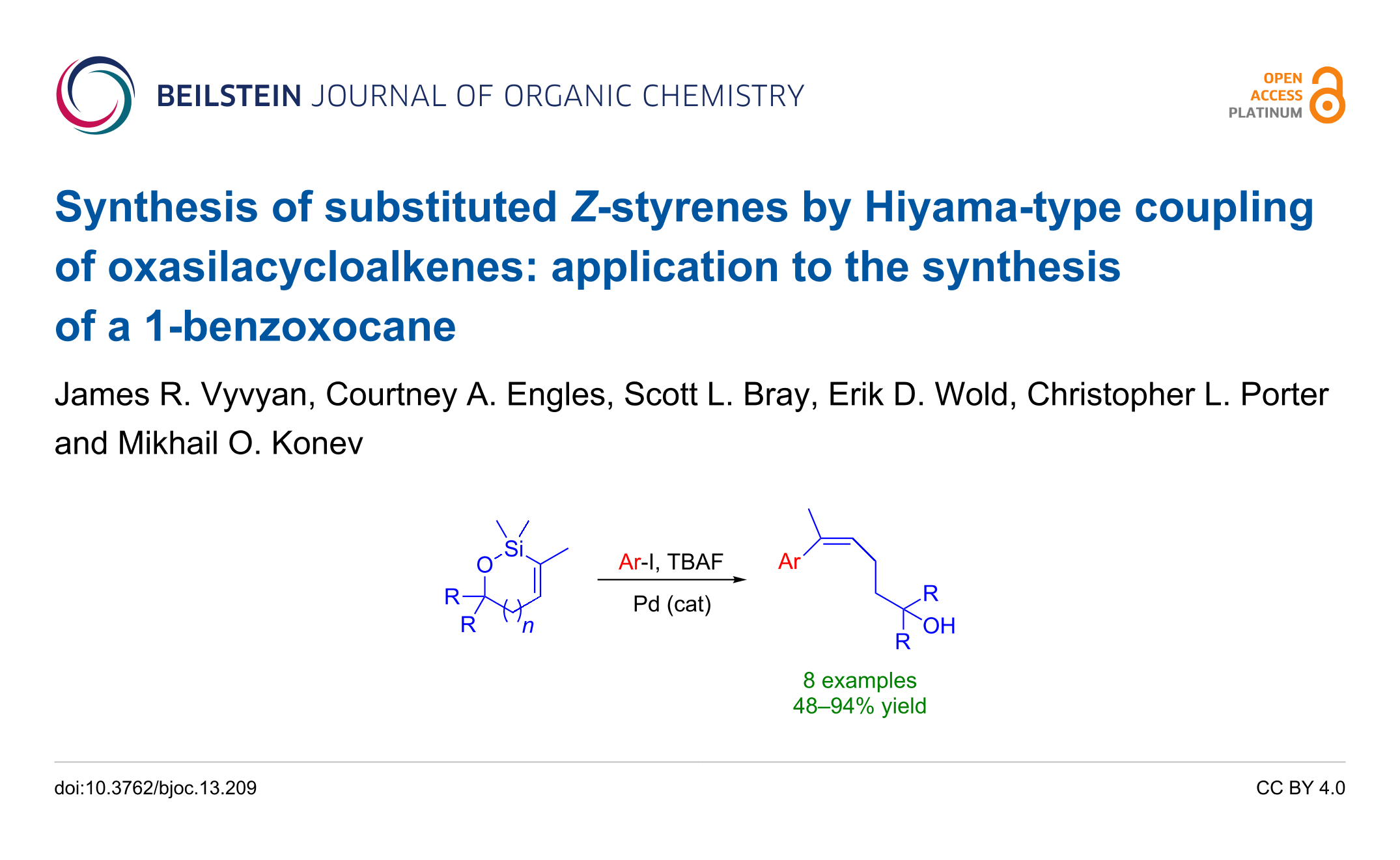 Vyvyan, J. R.; Engles, C. A.; Bray, S. L.; Wold, E. D.; Porter, C. L.; Konev, M. O. Beilstein J. Org. Chem. 2017, 13, 2122–2127. doi:10.3762/bjoc.13.209