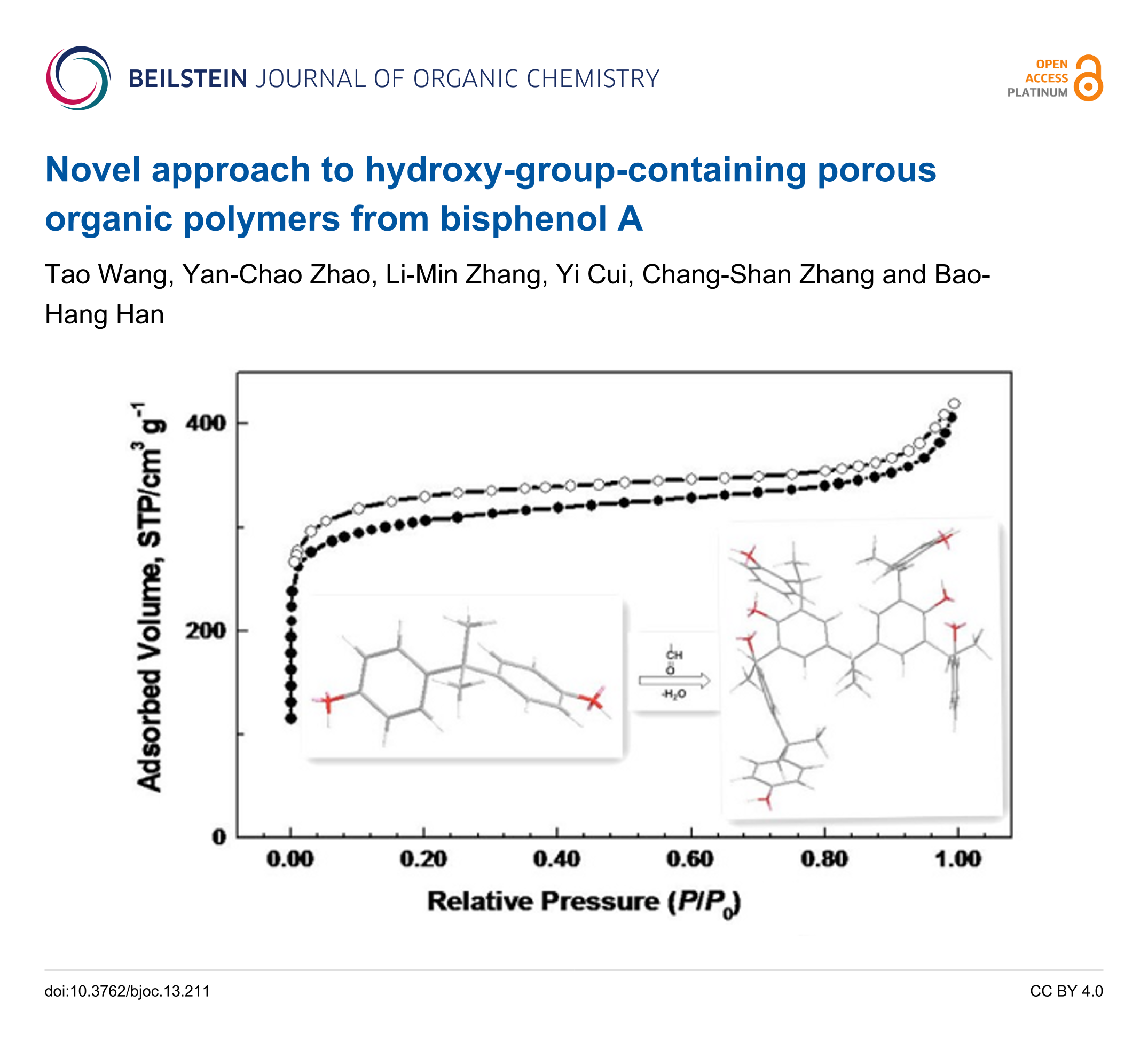 Novel approach to hydroxy-group-containing porous organic polymers from bisphenol A