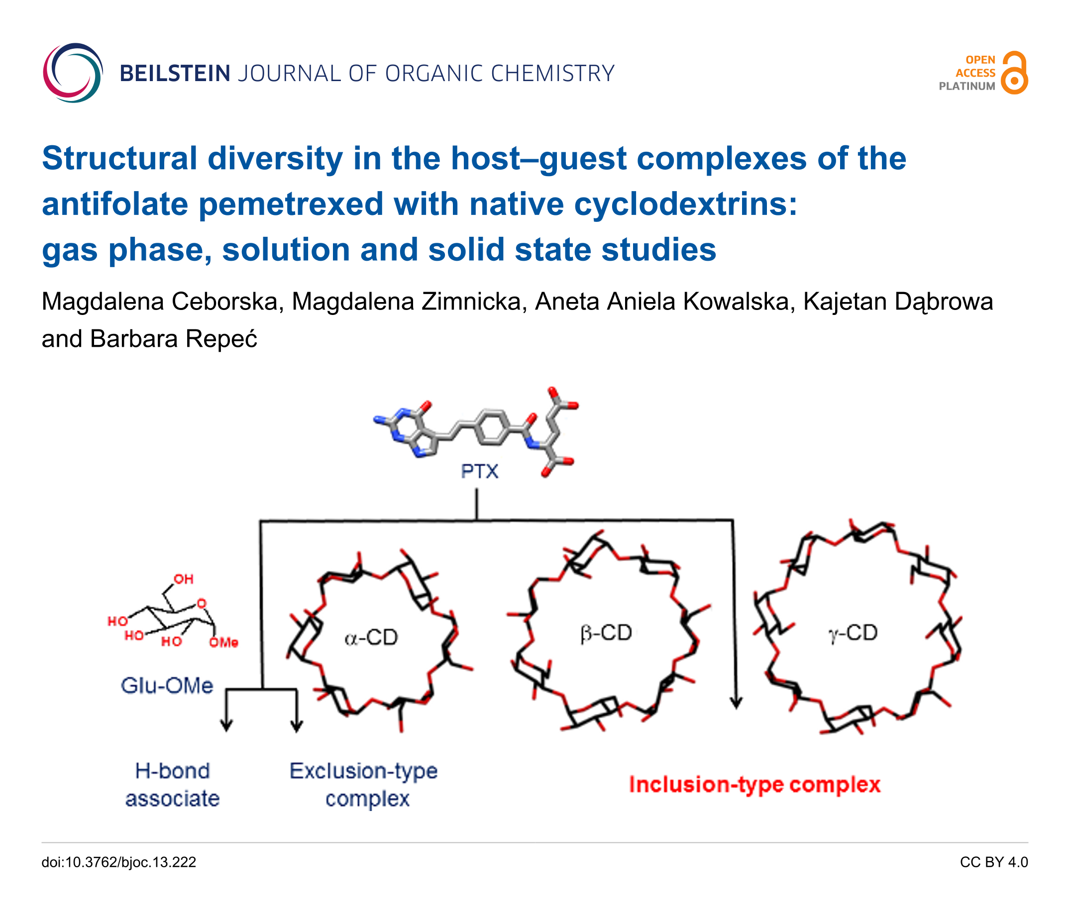 Structural diversity in the host–guest complexes of the antifolate pemetrexed with native cyclodextrins: gas phase, solution and solid state studies