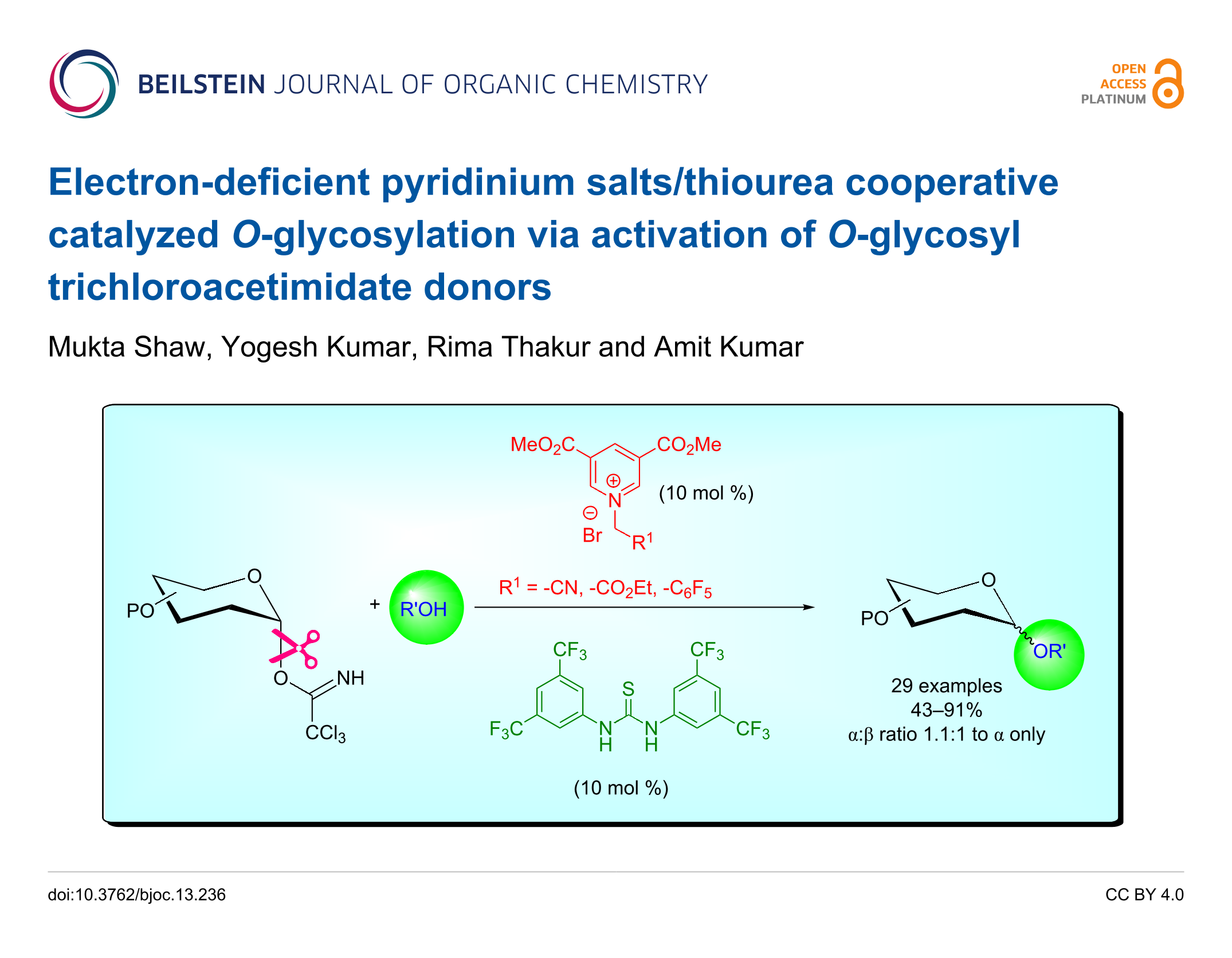 - Aghi, A.; Sau, S.; Kumar, A. Exploiting π and hydrogen bonding interactions of a strain-free pyridinium tetrafluoroborate salt for stereoselective synthesis of O-aryl glycosides. Organic Chemistry Frontiers 2025, 12, 2362–2374. doi:10.1039/d4qo02401j