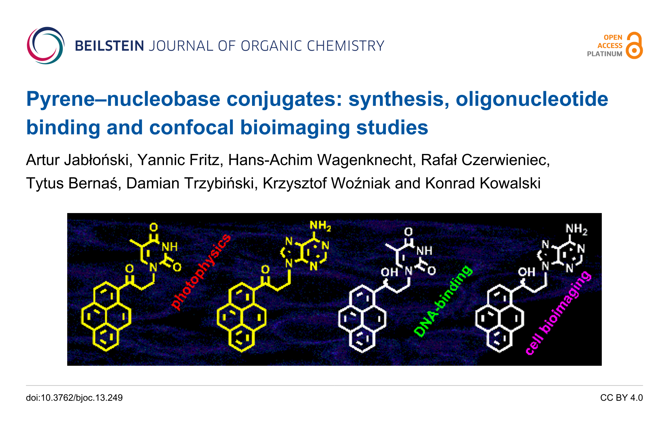 Jabłoński, A.; Fritz, Y.; Wagenknecht, H.-A.; Czerwieniec, R.; Bernaś, T.; Trzybiński, D.; Woźniak, K.; Kowalski, K. Beilstein J. Org. Chem. 2017, 13, 2521–2534. doi:10.3762/bjoc.13.249