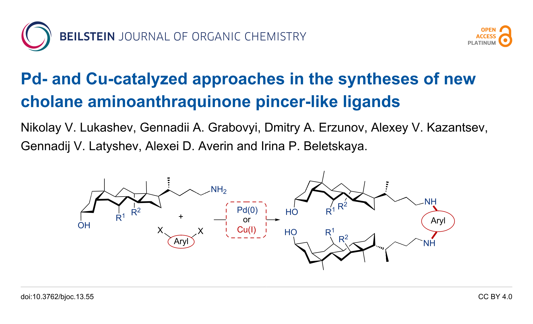 Lukashev, N. V.; Grabovyi, G. A.; Erzunov, D. A.; Kazantsev, A. V.; Latyshev, G. V.; Averin, A. D.; Beletskaya., I. P. Beilstein J. Org. Chem. 2017, 13, 564–570. doi:10.3762/bjoc.13.55