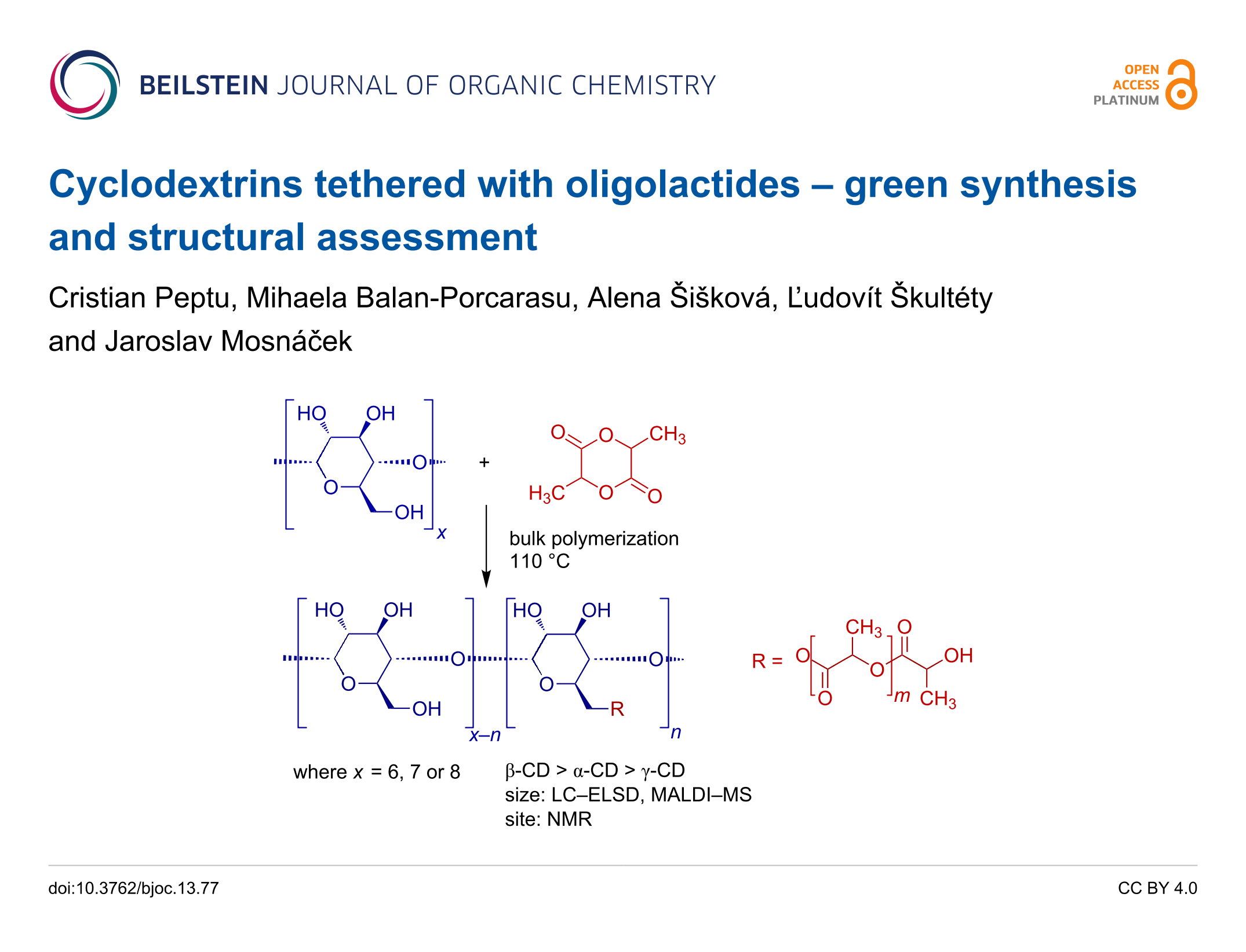 Cyclodextrins tethered with oligolactides – green synthesis and structural assessment