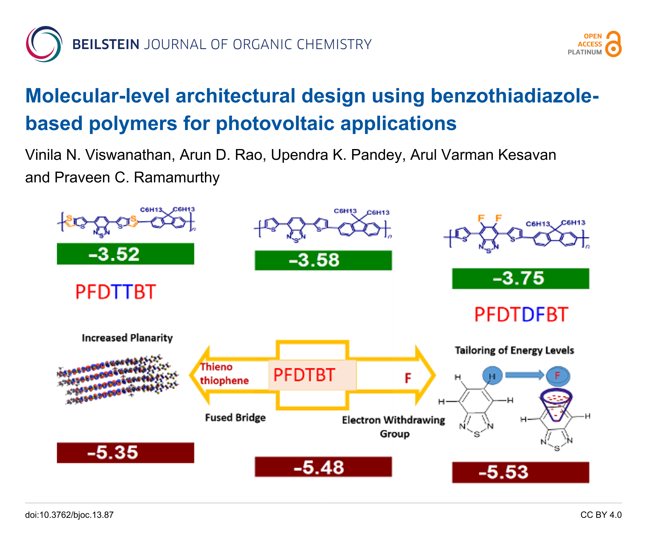 - Mukherjee, R.; Srivastava, P.; Singh, P.; Bhardwaj, S.; Saha, A.; Viswanathan, V. N.; Ramamurthy, P. C.; Avasthi, S. D-A-D Structured Polymer Interlayer for Higher Open-Circuit Voltage and Stability in MAPbI3 Perovskite Solar Cells. Journal of Electronic Materials 2022, 51, 6699–6706. doi:10.1007/s11664-022-09914-y