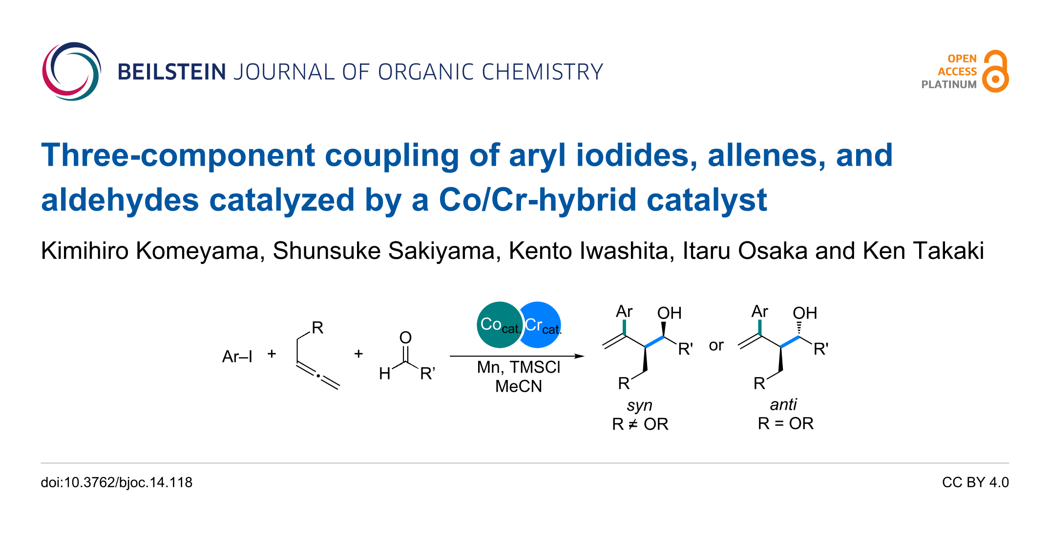 Komeyama, K.; Sakiyama, S.; Iwashita, K.; Osaka, I.; Takaki, K. Beilstein J. Org. Chem. 2018, 14, 1413–1420. doi:10.3762/bjoc.14.118