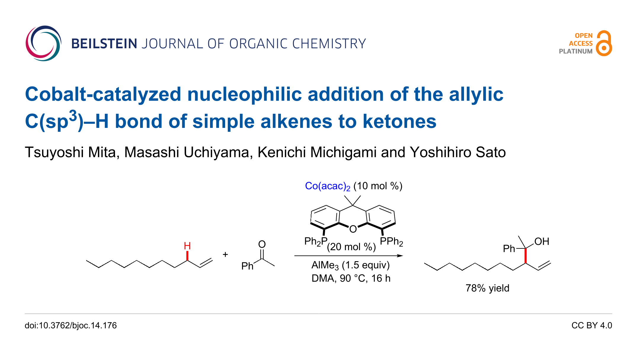 - Michigami, K.; Mita, T.; Sato, Y. Catalytic Carbonyl Allylation Using Terminal Alkenes as Nucleophiles. Journal of Synthetic Organic Chemistry, Japan 2022, 80, 210–221. doi:10.5059/yukigoseikyokaishi.80.210