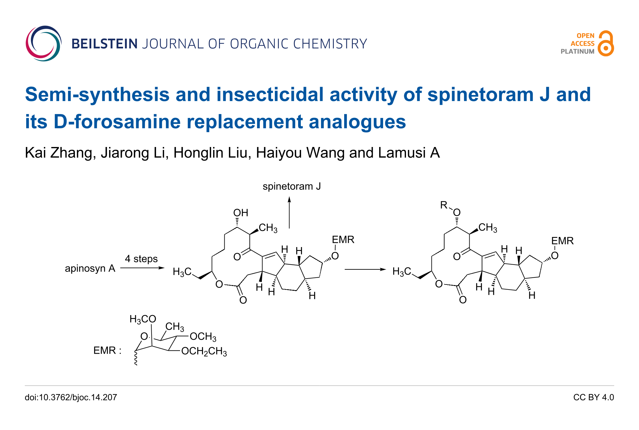 - Zhang, K.; Xu, Y.; Gao, S.; Li, J. Synthesis and activity of spinetoram derivatives. Natural product research 2023, 39, 2218–2230. doi:10.1080/14786419.2023.2297252