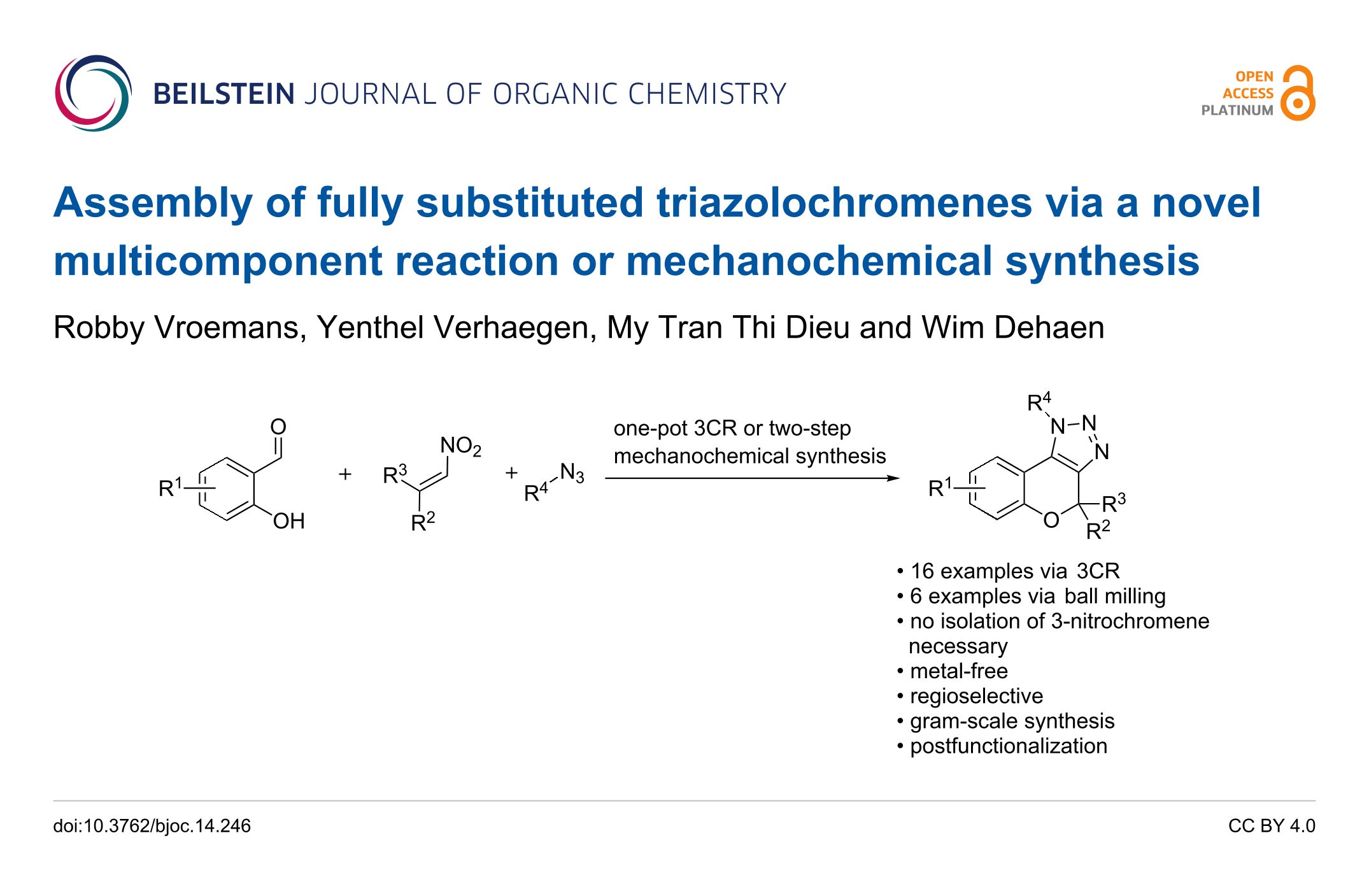 Assembly of fully substituted triazolochromenes via a novel multicomponent reaction or mechanochemical synthesis