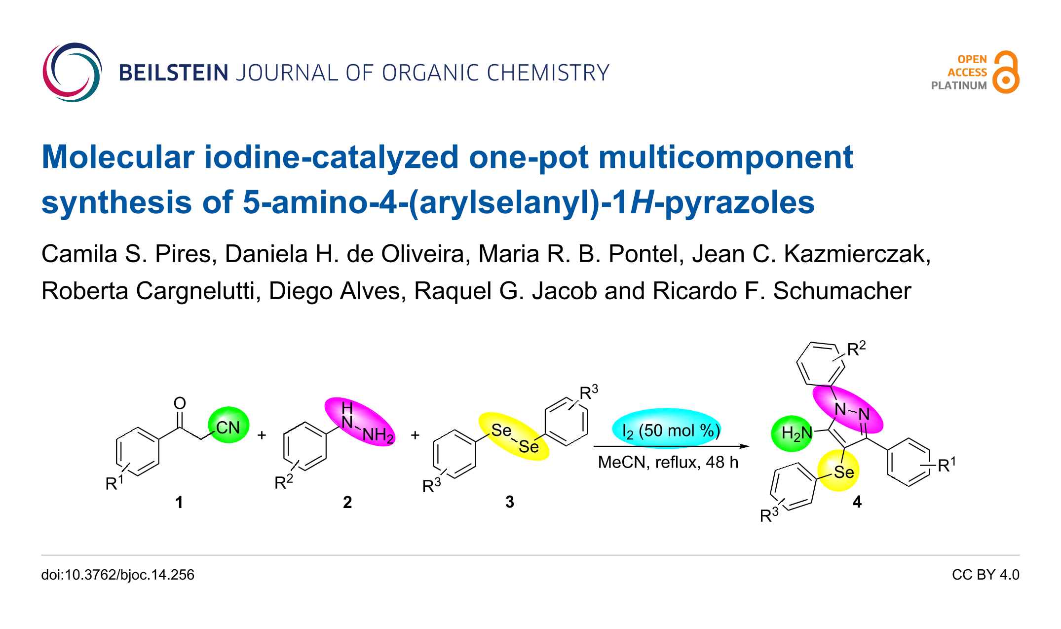 Pires, C. S.; de Oliveira, D. H.; Pontel, M. R. B.; Kazmierczak, J. C.; Cargnelutti, R.; Alves, D.; Jacob, R. G.; Schumacher, R. F. Beilstein J. Org. Chem. 2018, 14, 2789–2798. doi:10.3762/bjoc.14.256