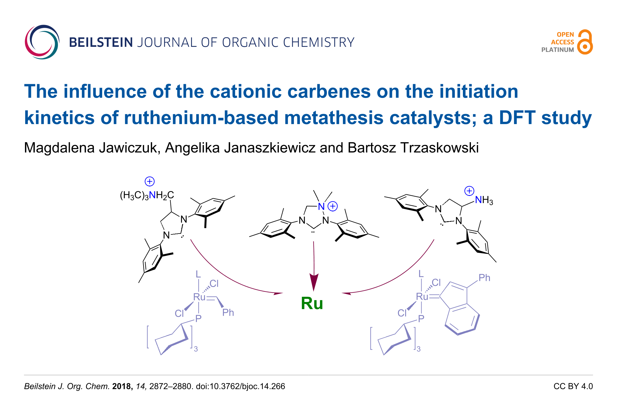 - Jawiczuk, M.; Marczyk, A.; Młodzikowska-Pieńko, K.; Trzaskowski, B. Impact of the Carbene Derivative Charge on the Decomposition Rates of Hoveyda-Grubbs-like Metathesis Catalysts. The journal of physical chemistry. A 2020, 124, 6158–6167. doi:10.1021/acs.jpca.0c03096