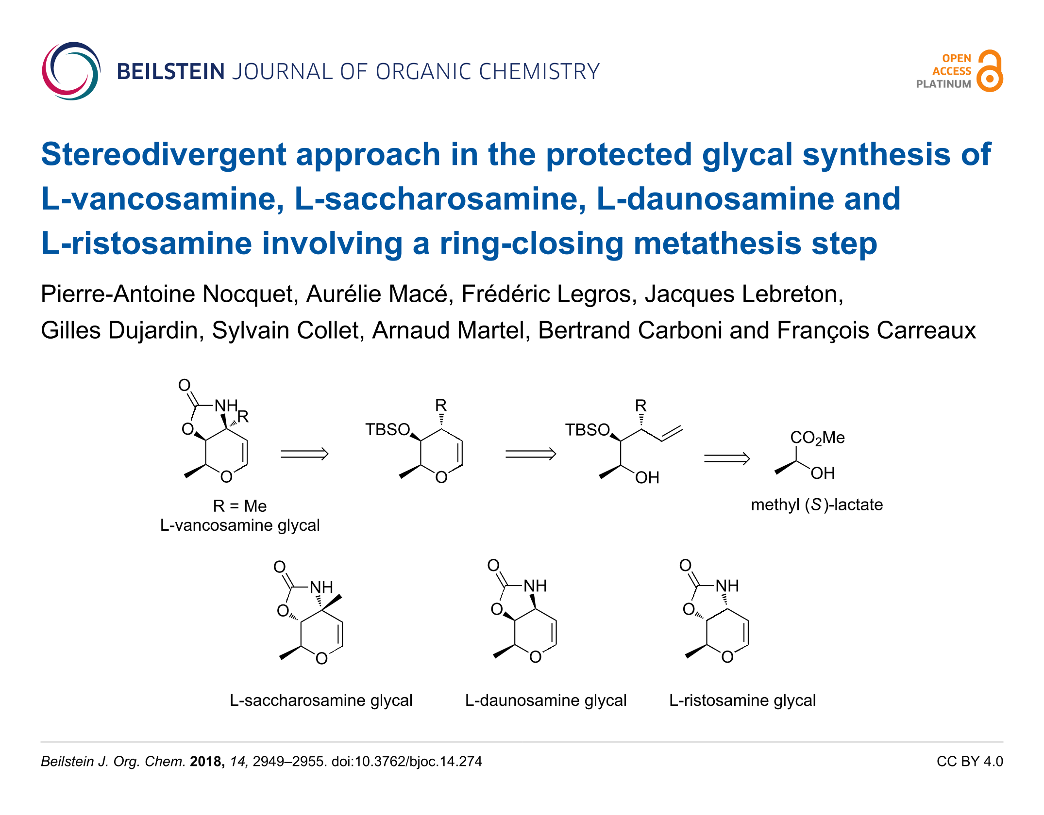 Stereodivergent approach in the protected glycal synthesis of L-vancosamine, L-saccharosamine, L-daunosamine and L-ristosamine involving a ring-closing metathesis step