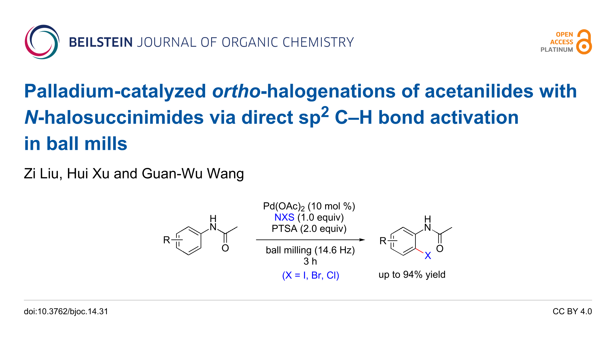 Palladium-catalyzed ortho-halogenations of acetanilides with N-halosuccinimides via direct sp2 C–H bond activation in ball mills