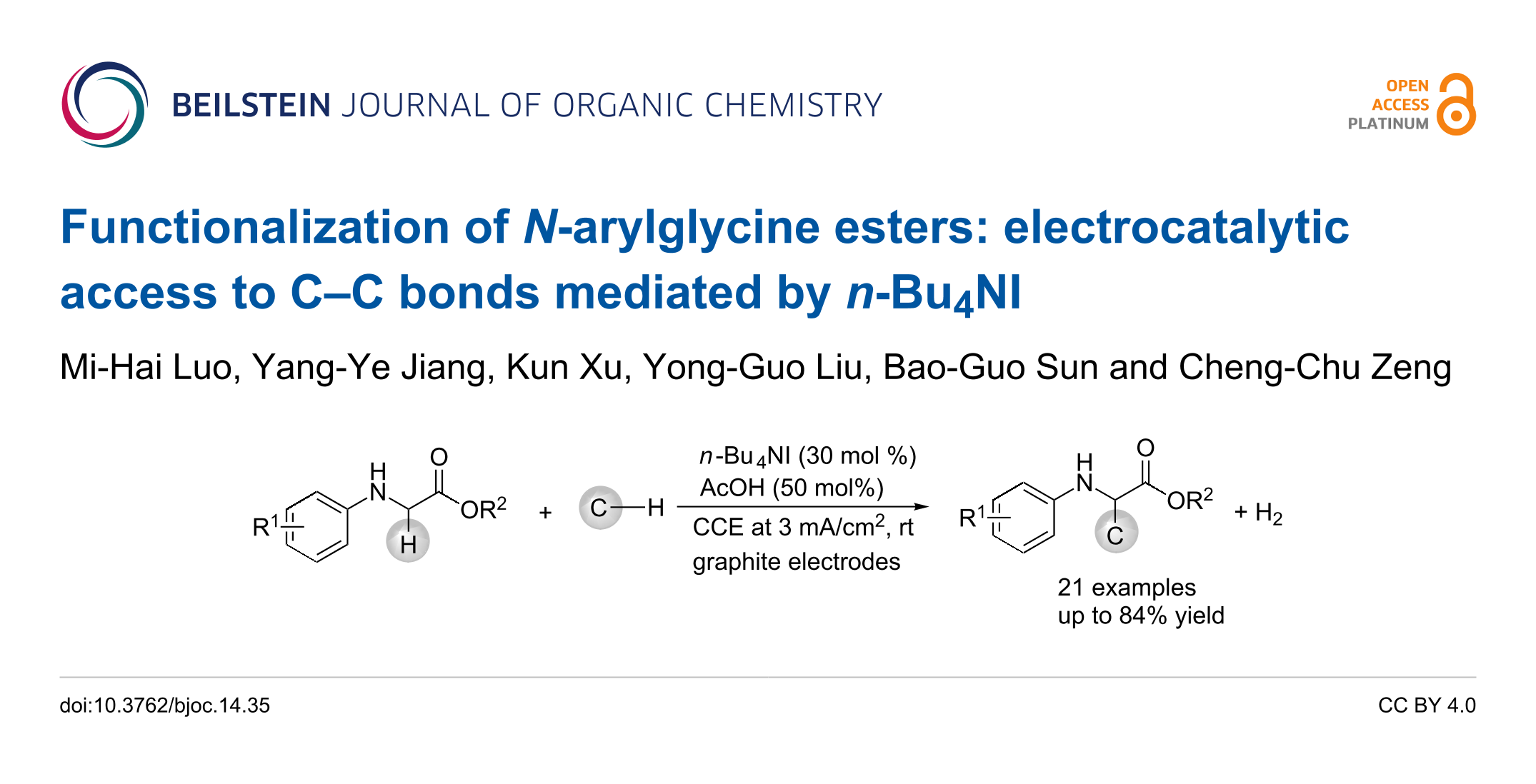 Luo, M.-H.; Jiang, Y.-Y.; Xu, K.; Liu, Y.-G.; Sun, B.-G.; Zeng, C.-C. Beilstein J. Org. Chem. 2018, 14, 499–505. doi:10.3762/bjoc.14.35