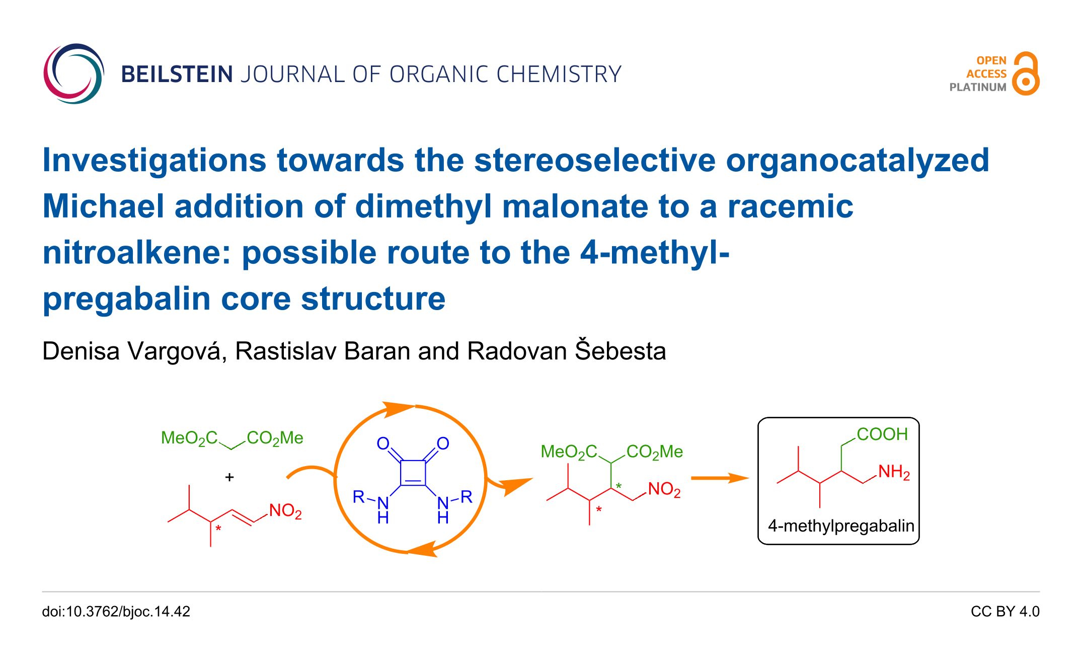 Investigations towards the stereoselective organocatalyzed Michael addition of dimethyl malonate to a racemic nitroalkene: possible route to the 4-methylpregabalin core structure