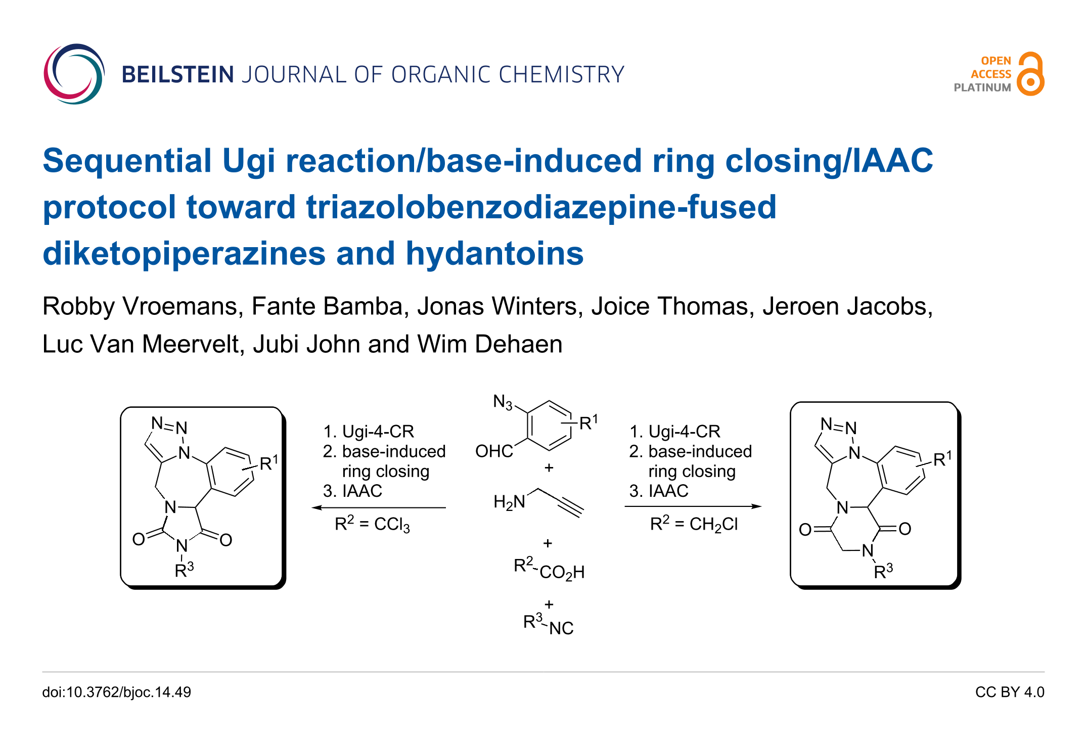 Vroemans, R.; Bamba, F.; Winters, J.; Thomas, J.; Jacobs, J.; Van Meervelt, L.; John, J.; Dehaen, W. Beilstein J. Org. Chem. 2018, 14, 626–633. doi:10.3762/bjoc.14.49