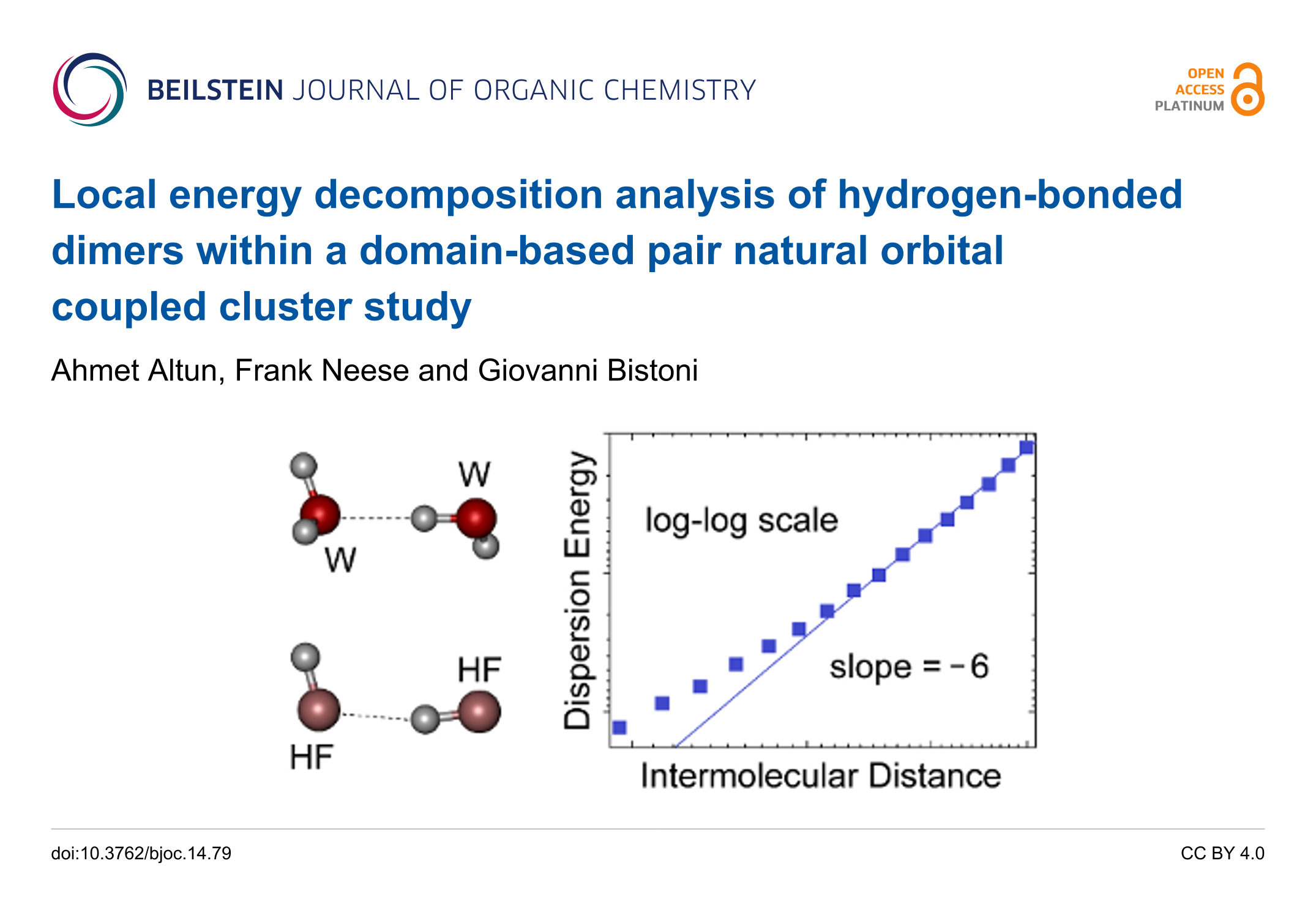 - Colucci, M.; Regni, G.; Leach, I. F.; Bistoni, G. Local Energy Decomposition of Coupled Cluster Energies: Principles and Applications. Structure and Bonding; Springer Nature Switzerland, 2025; pp 47–70. doi:10.1007/430_2025_103