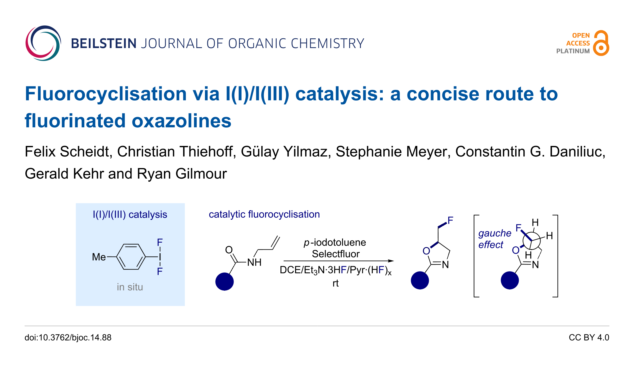 - Neufeld, J.; Daniliuc, C. G.; Gilmour, R. Fluorocyclisation of Oximes to Isoxazolines Through I(I)/I(III) Catalysis. Helvetica Chimica Acta 2023, 106. doi:10.1002/hlca.202200183