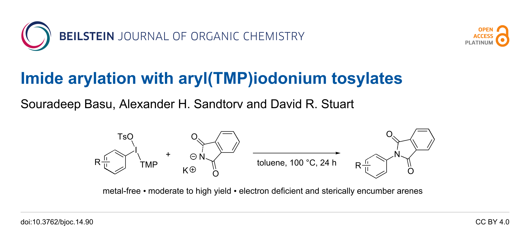 Basu, S.; Sandtorv, A. H.; Stuart, D. R. Beilstein J. Org. Chem. 2018, 14, 1034–1038. doi:10.3762/bjoc.14.90