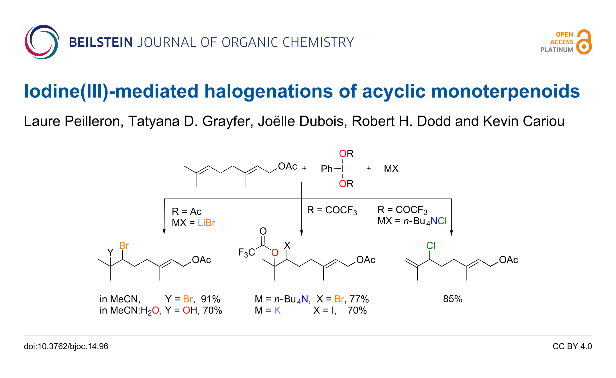 Iodine(III)-mediated halogenations of acyclic monoterpenoids