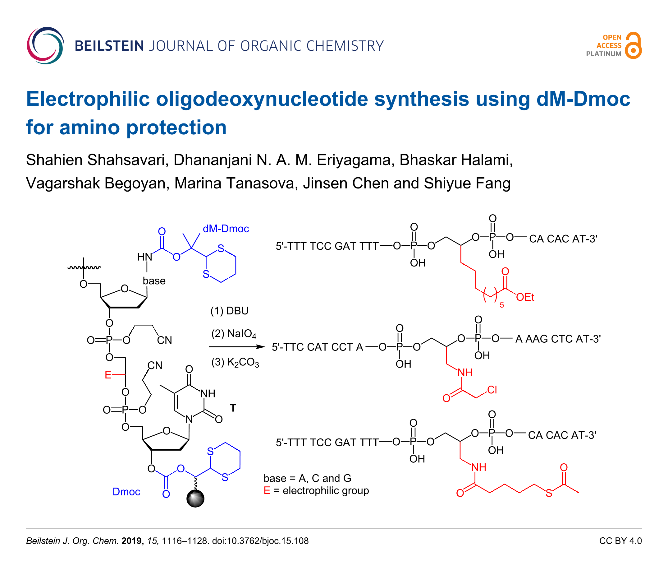 - Shahsavari, S.; Eriyagama, D. N. A. M.; Chen, J.; Halami, B.; Yin, Y.; Chillar, K.; Fang, S. Sensitive Oligodeoxynucleotide Synthesis Using Dim and Dmoc as Protecting Groups. The Journal of organic chemistry 2019, 84, 13374–13383. doi:10.1021/acs.joc.9b01527
