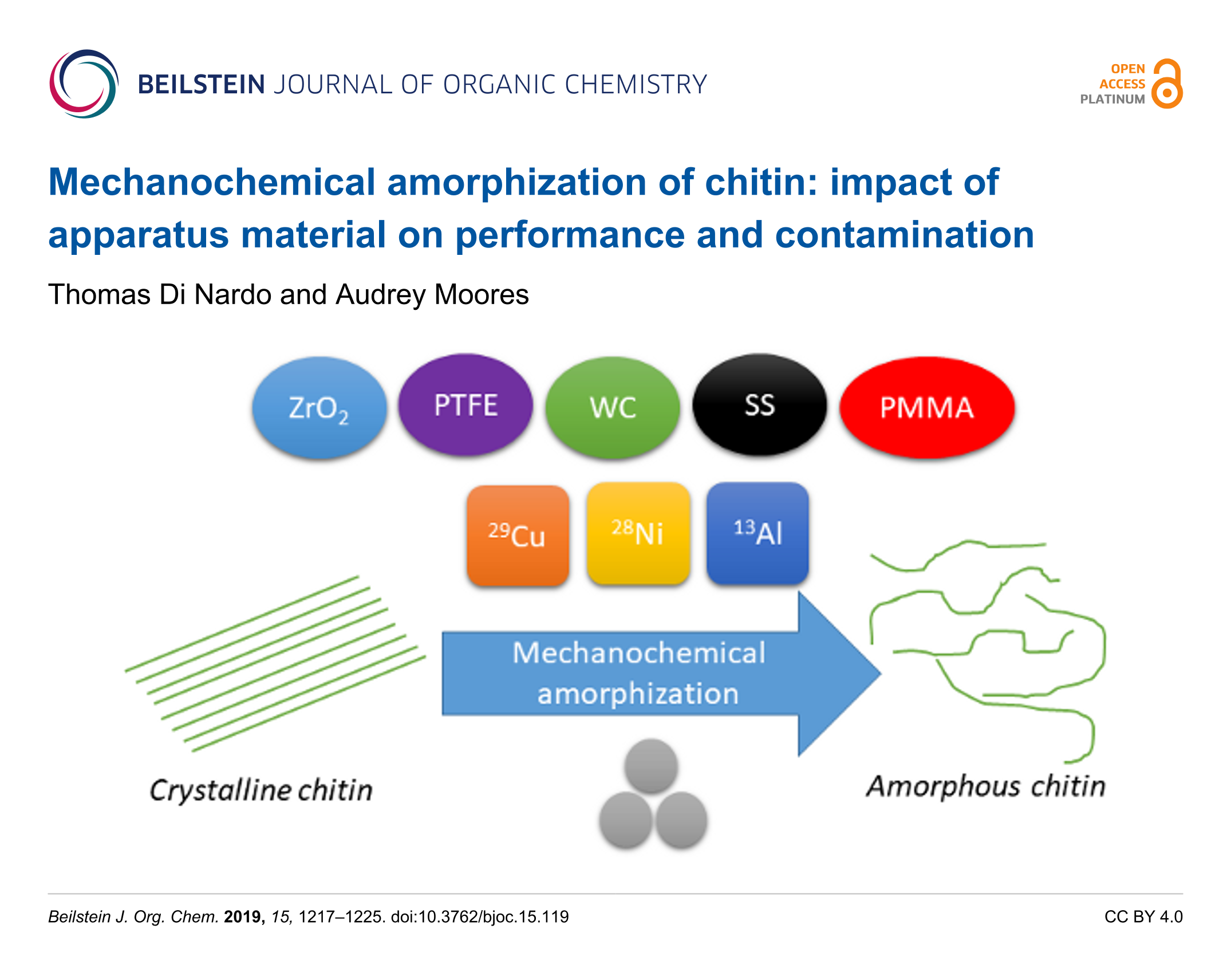 Mechanochemical amorphization of chitin: impact of apparatus material on performance and contamination
