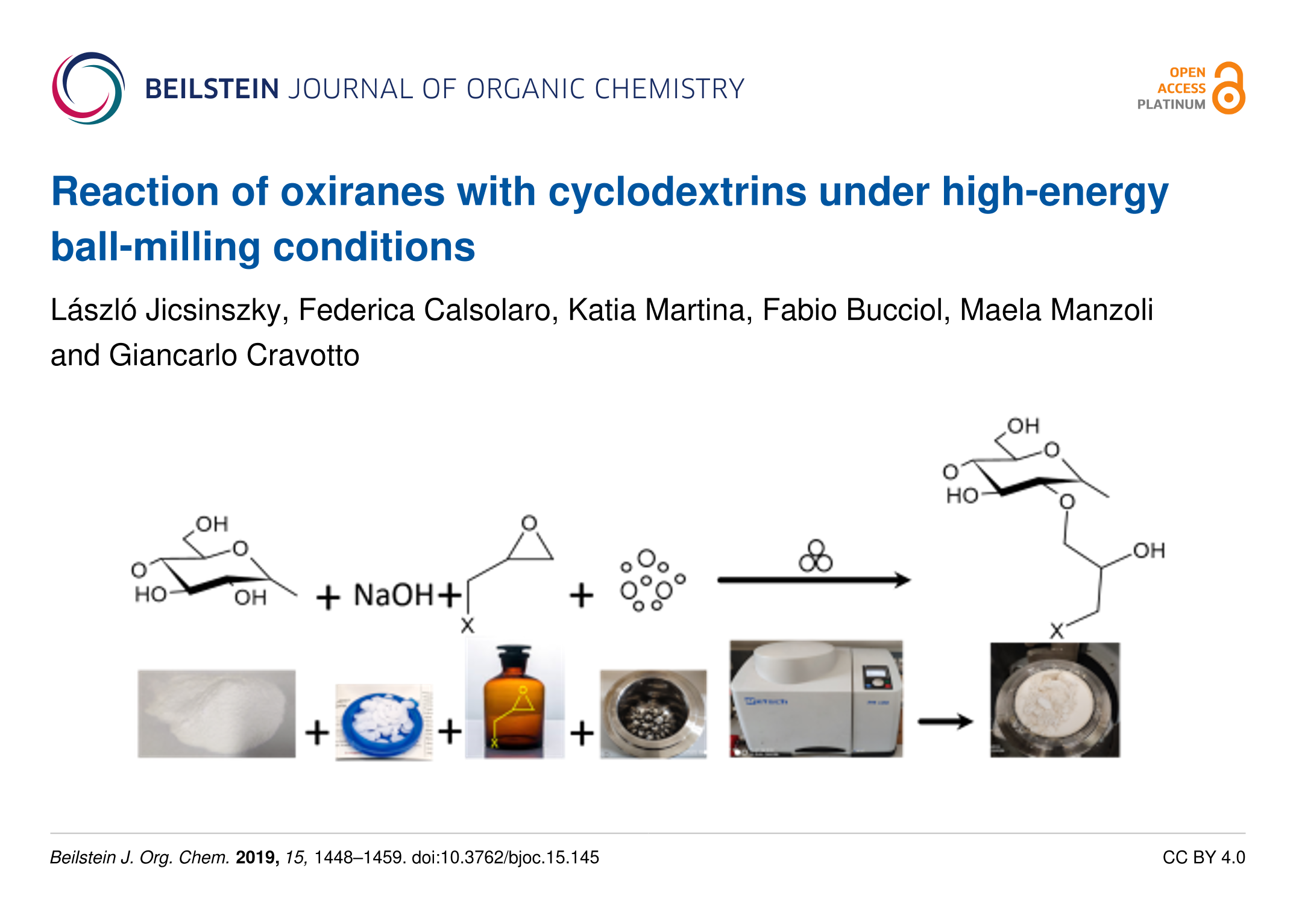 Jicsinszky, L.; Calsolaro, F.; Martina, K.; Bucciol, F.; Manzoli, M.; Cravotto, G. Beilstein J. Org. Chem. 2019, 15, 1448–1459. doi:10.3762/bjoc.15.145
