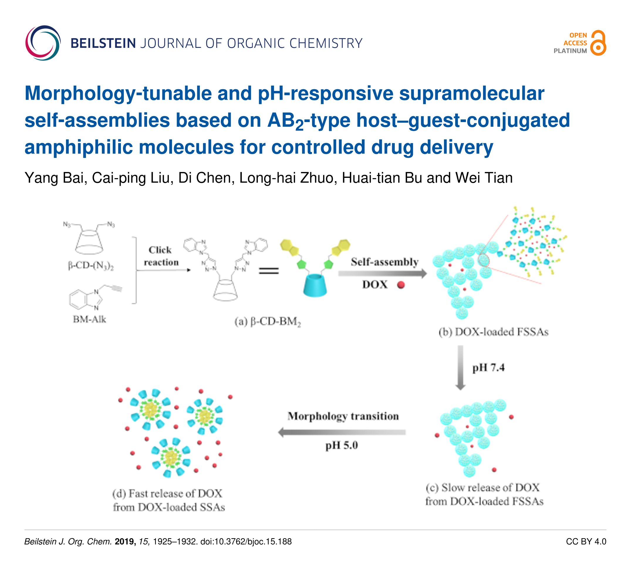 Morphology-tunable and pH-responsive supramolecular self-assemblies based on AB2-type host–guest-conjugated amphiphilic molecules for controlled drug delivery