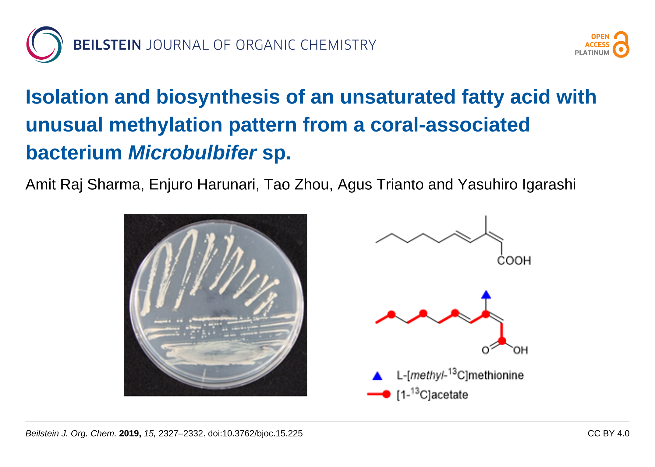 Sharma, A. R.; Harunari, E.; Zhou, T.; Trianto, A.; Igarashi, Y. Beilstein J. Org. Chem. 2019, 15, 2327–2332. doi:10.3762/bjoc.15.225