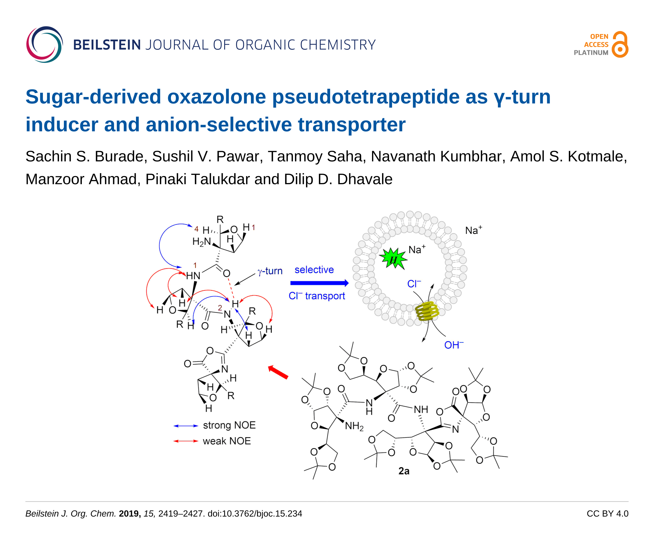 Burade, S. S.; Pawar, S. V.; Saha, T.; Kumbhar, N.; Kotmale, A. S.; Ahmad, M.; Talukdar, P.; Dhavale, D. D. Beilstein J. Org. Chem. 2019, 15, 2419–2427. doi:10.3762/bjoc.15.234