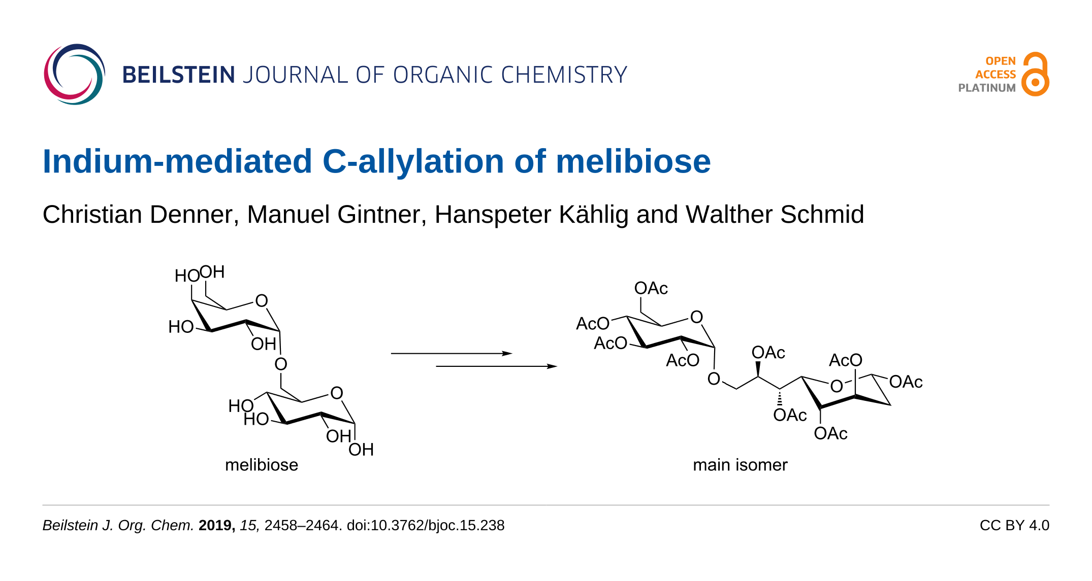 - Denner, C.; Gintner, M.; Kählig, H.; Wrodnigg, T. M.; Schmid, W. Indium-mediated allylation of disaccharides. Carbohydrate research 2020, 498, 108170. doi:10.1016/j.carres.2020.108170