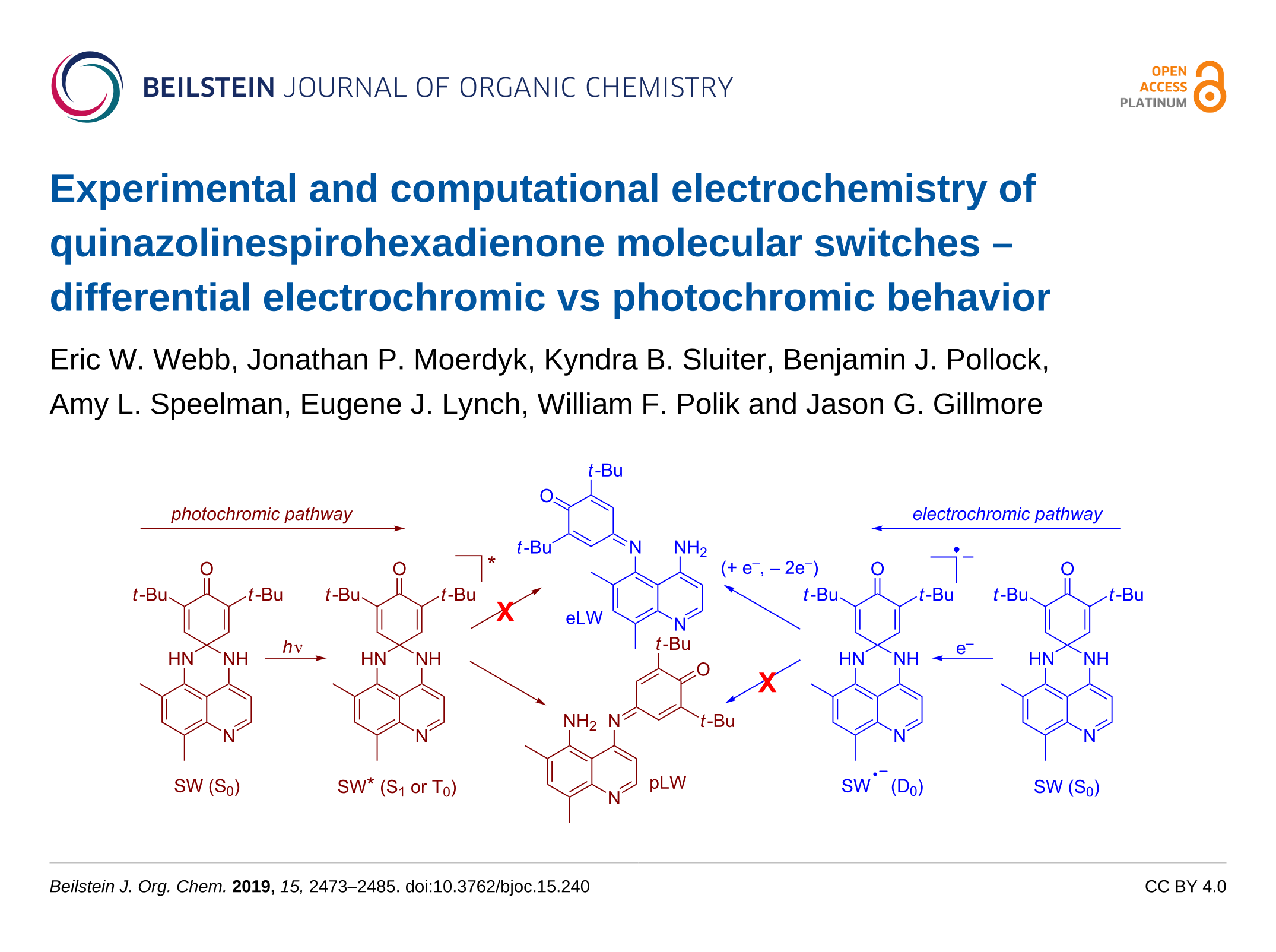 Webb, E. W.; Moerdyk, J. P.; Sluiter, K. B.; Pollock, B. J.; Speelman, A. L.; Lynch, E. J.; Polik, W. F.; Gillmore, J. G. Beilstein J. Org. Chem. 2019, 15, 2473–2485. doi:10.3762/bjoc.15.240