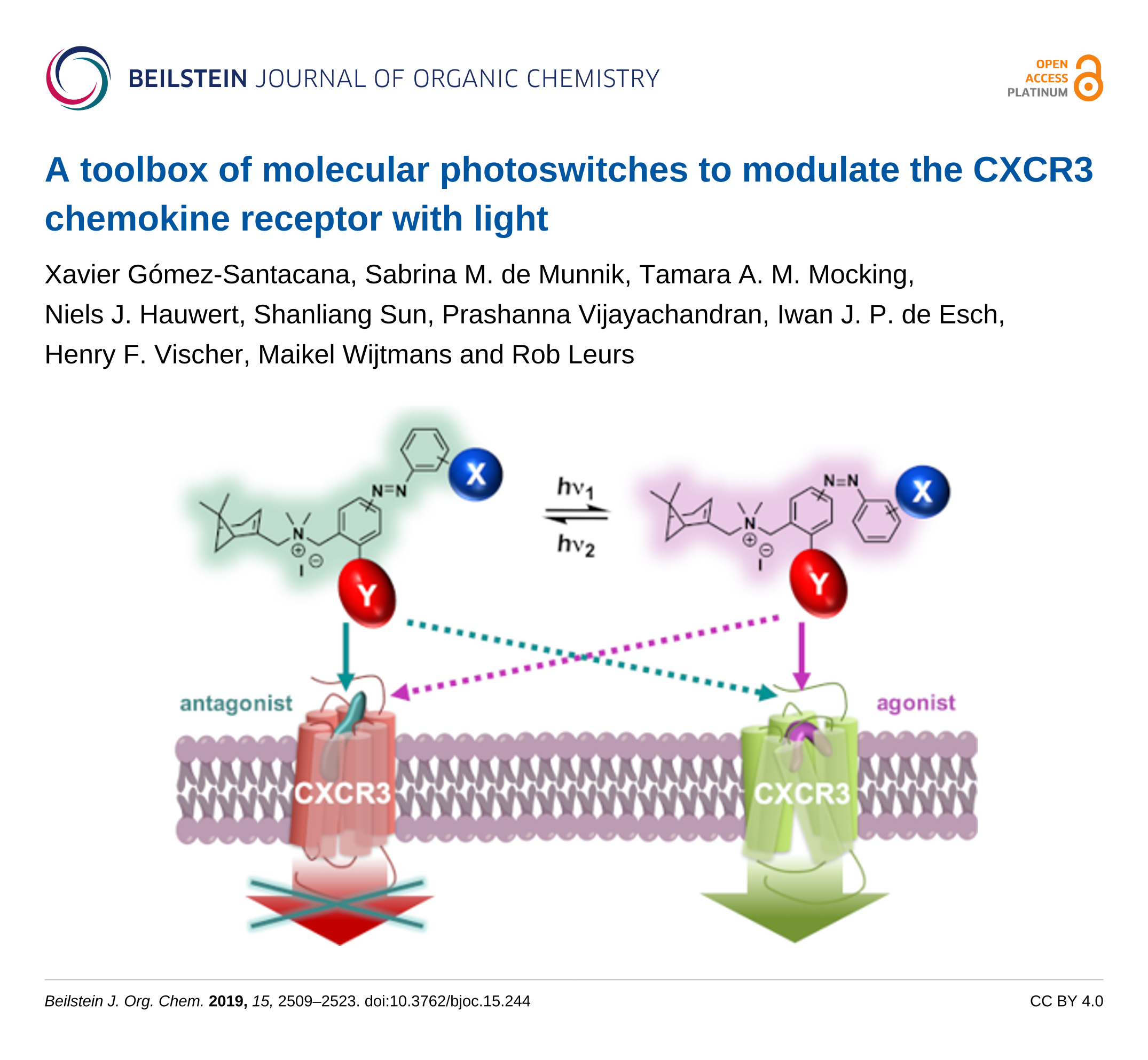 - Bérenger, S.; Adamska, J. M.; Deflorian, F.; de Graaf, C.; Palmer, C. B.; Szpakowska, M.; Chevigné, A.; de Esch, I. J. P.; Zarzycka, B.; Vischer, H. F.; Wijtmans, M.; Leurs, R. Design, synthesis and pharmacological characterization of the first photoswitchable small-molecule agonist for the Atypical Chemokine Receptor 3. Cold Spring Harbor Laboratory 2024. doi:10.1101/2024.03.20.585914