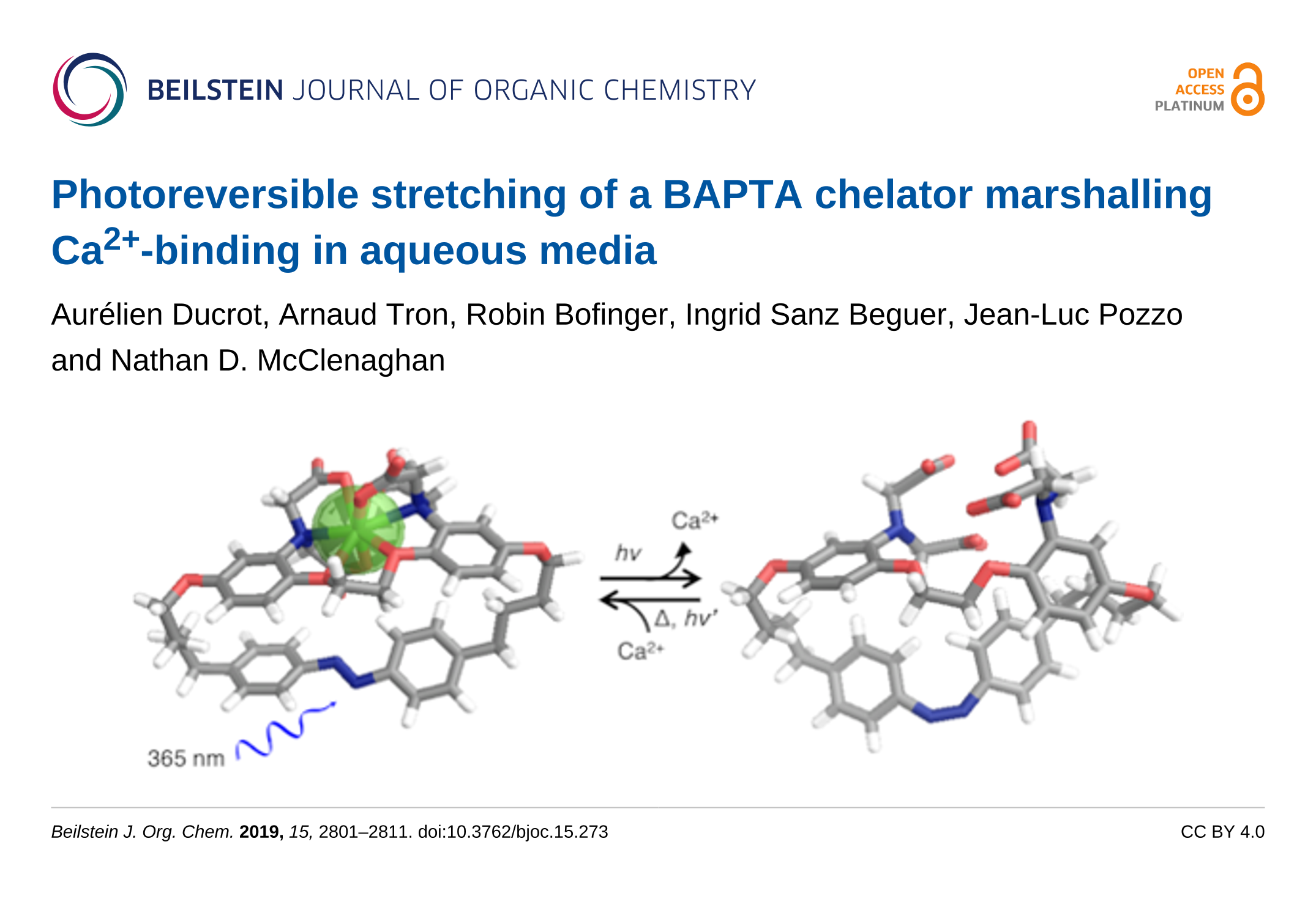 Ducrot, A.; Tron, A.; Bofinger, R.; Sanz Beguer, I.; Pozzo, J.-L.; McClenaghan, N. D. Beilstein J. Org. Chem. 2019, 15, 2801–2811. doi:10.3762/bjoc.15.273
