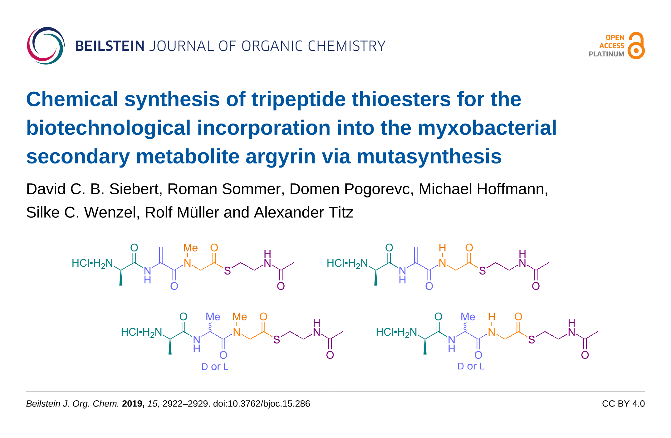 Siebert, D. C. B.; Sommer, R.; Pogorevc, D.; Hoffmann, M.; Wenzel, S. C.; Müller, R.; Titz, A. Beilstein J. Org. Chem. 2019, 15, 2922–2929. doi:10.3762/bjoc.15.286